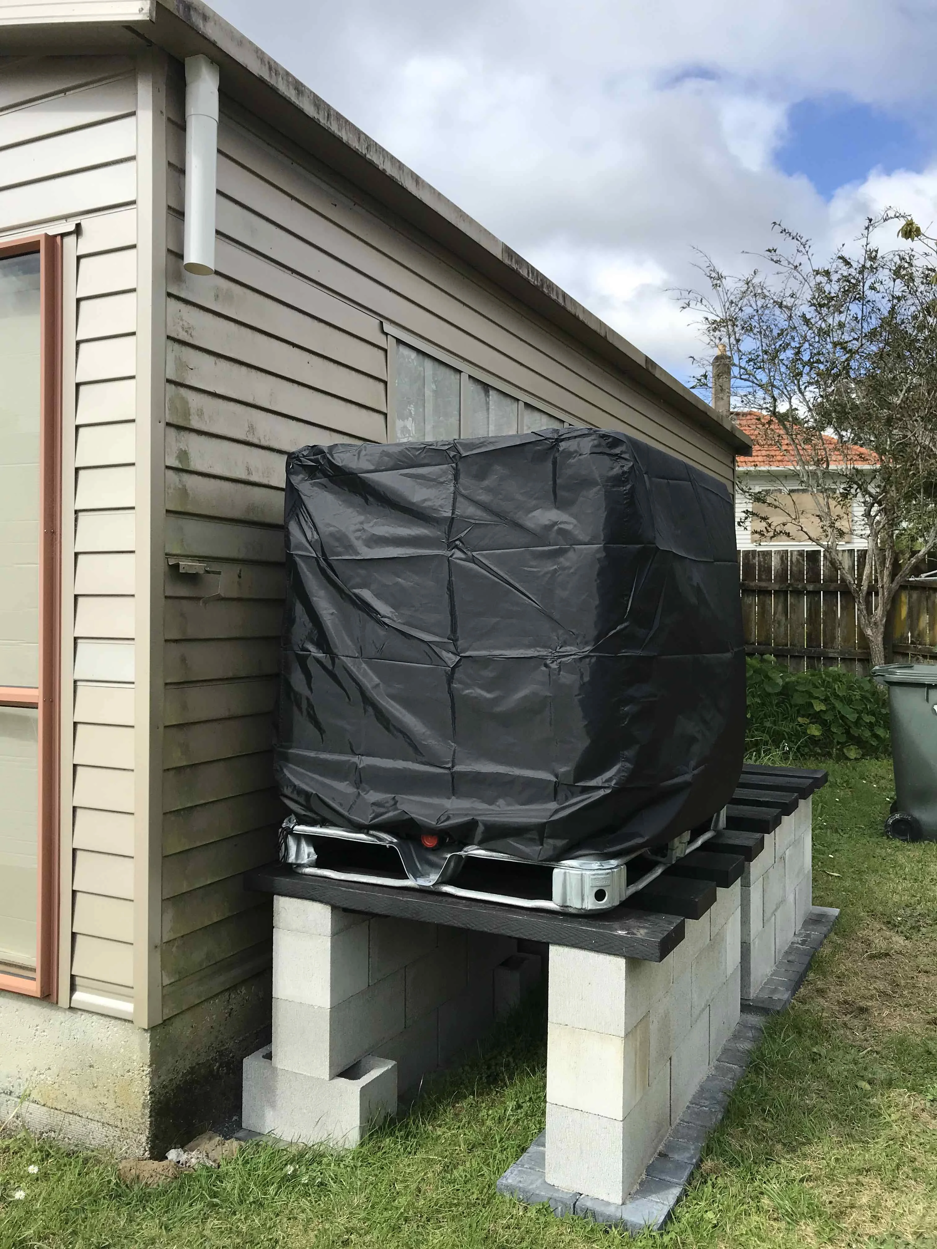 Жаль, что внутри Нет коротких монтажных полос, чтобы прикрепить крышку к раме ствола IBC.
