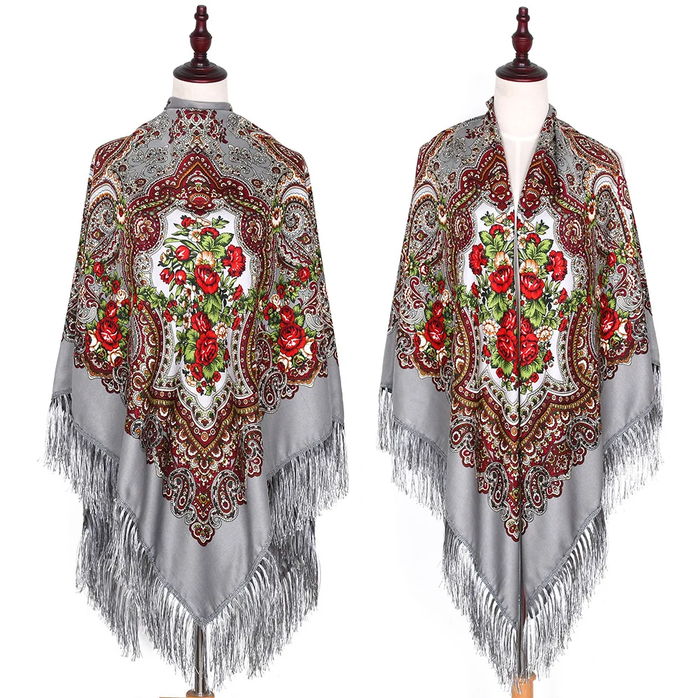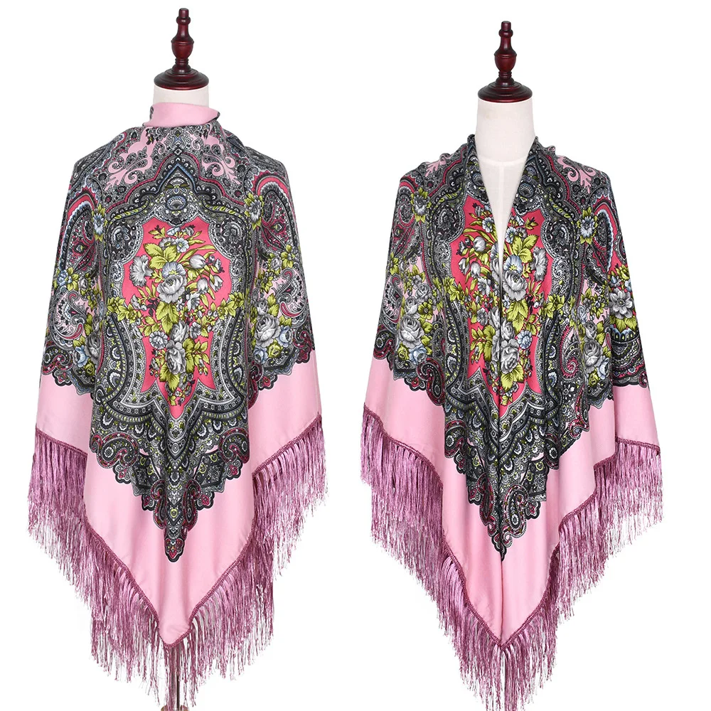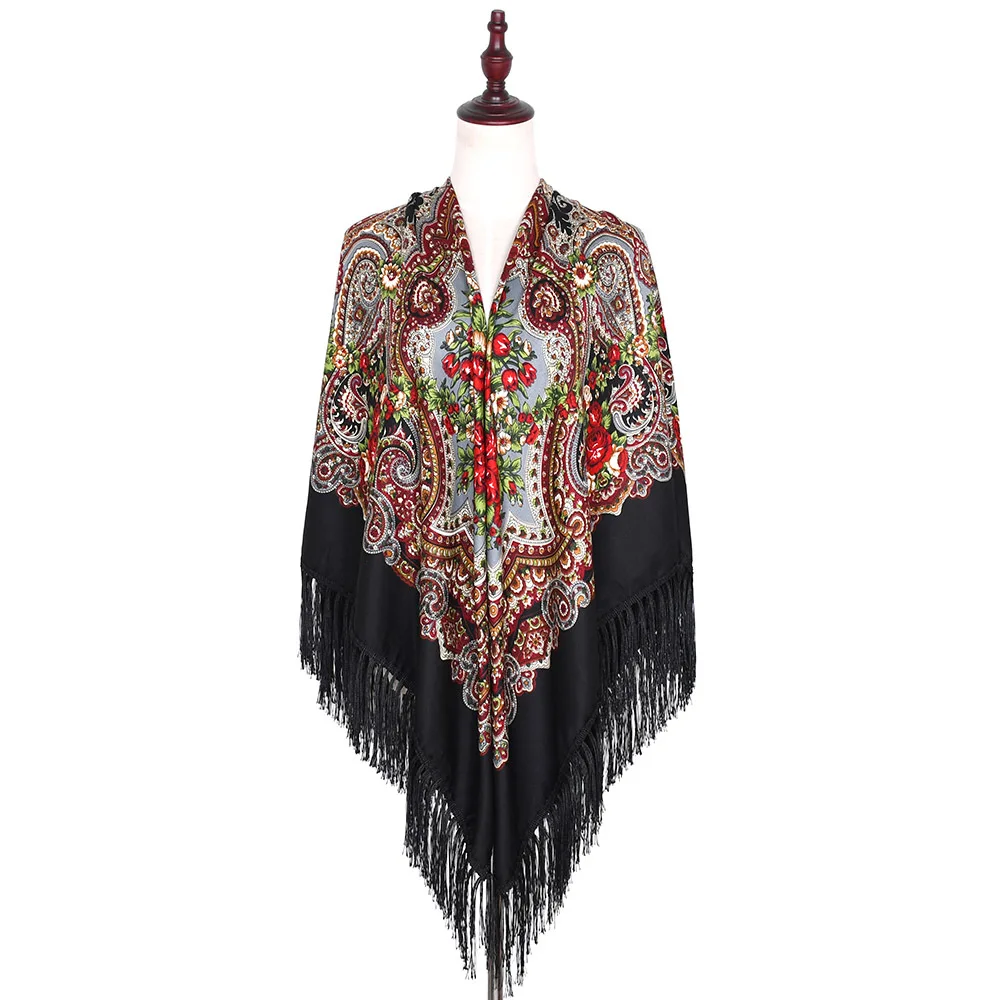 160*160 см женский ретро большой размер русский квадратный шарф с цветочным принтом шарфы в национальном стиле дамские шарфики с бахромой хиджаб шаль для путешествий