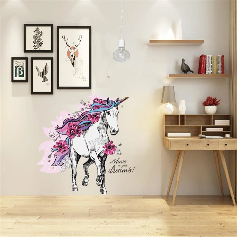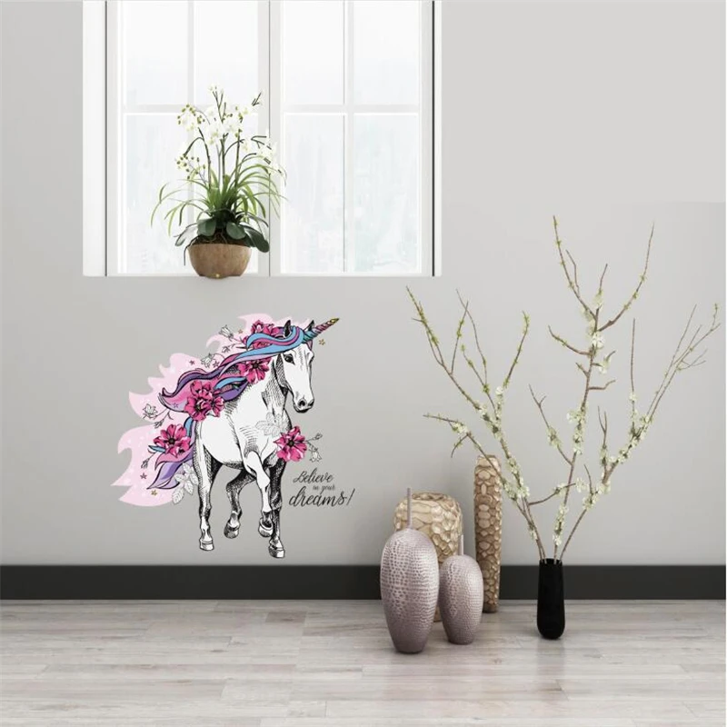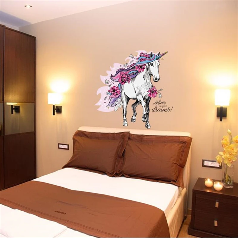 3D мультяшная Наклейка на стену в форме единорога настенная Фреска ...