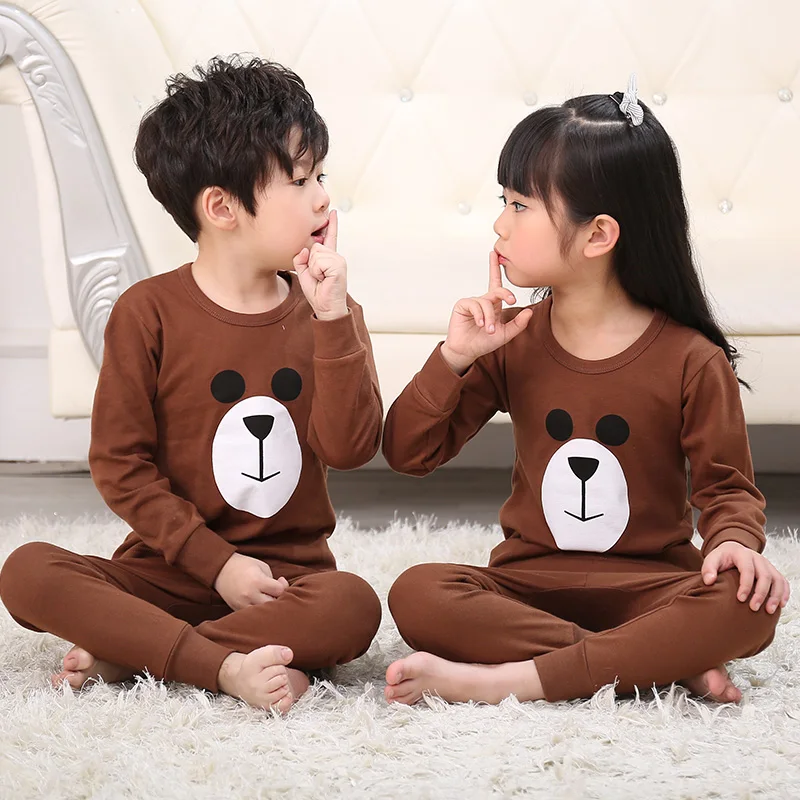 Новая осенняя одежда для мальчиков пижамы для девочек с длинным рук...