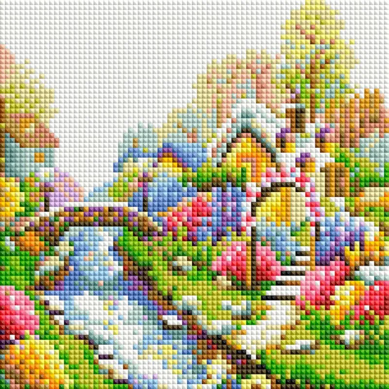 Набор из серии Алмазная мозаика от торговой марки «Белоснежка» наполнит ваши свободные часы увлекательным занятием. Создайте собственными руками чудесную летнюю композицию: бегущая речка, мостик, живописный берег. Вы будете восхищены мерцающими и переливающимися деталями на свету! Для реализации процесса понадобится: свободное время и минимум усилий. Алмазная мозаика способствует тому, чтобы ваше времяпрепровождение наполнилось лёгким, увлекательным, а самое главное — полезным досугом. В комплектацию входит: основа работы - холст с нанесённой цветной схемой с контрастными условными обозначениями, набор акриловых камней, пластмассовый лоток с ячейками, металлический пинцет, тюбик клея и листовка-ключ. Яркие искусственные камни выполнены из полимерного материала на основе эпоксидной смолы, огранены сверху, обладают высокой прочностью и умеренной усадкой. Не сомневайтесь, вы останетесь довольны результатом! Комплектация: 1. Основа картины - холст с нанесенной схемой и клеевым покрытием 2. Комплект квадратных камней с огранкой 2,5*2,5 мм. 3. Пластмассовый лоток с ячейками. 4. Пинцет металлический. 5. Дополнительный тюбик клея. 6. Листовка-ключ к схеме Характеристики: Серия - пейзаж Размер – 20*20 см. Тип выкладки – 100% заполнение Форма камней - квадратные 2,5*2,5 мм, 9 и 13 граней Количество цветов - 31 Упаковка – прозрачный пакет с кнопкой Торговая марка – Белоснежка Страна производства - Китай