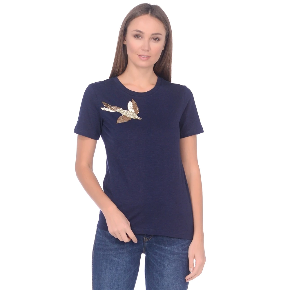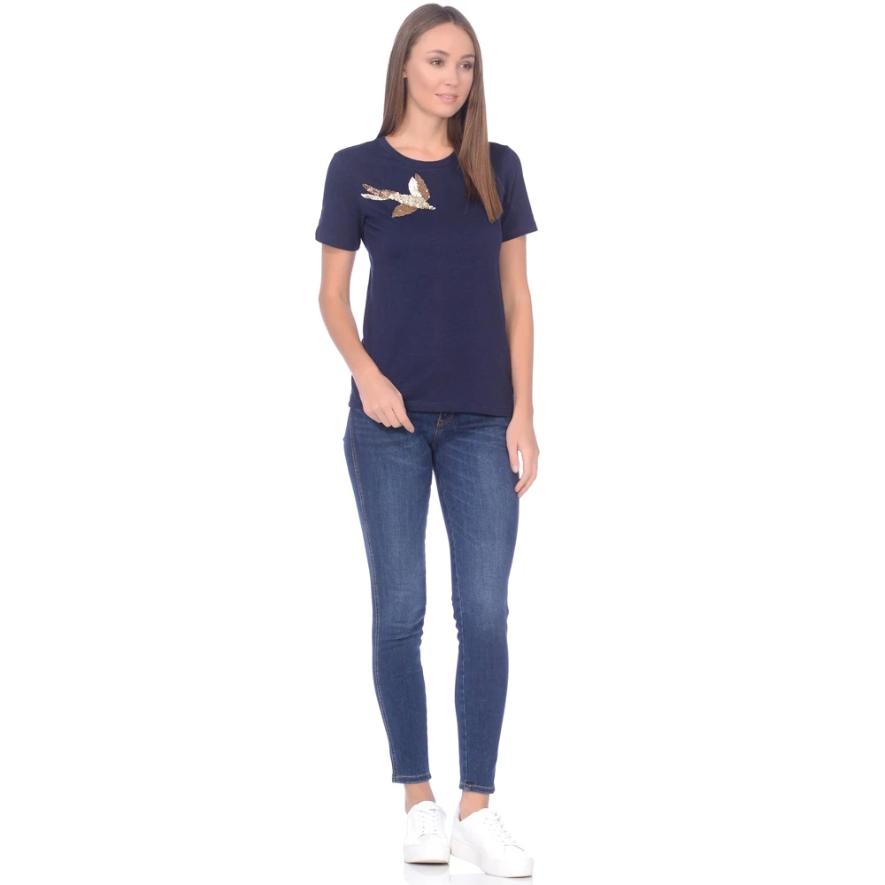 Производитель: Россия. Коллекция: ВЕСНА-ЛЕТО 2019. ~ Лаконичная футболка из хлопка - самая востребованная в повседневном гардеробе модель. Специально для тех, кто стремится создать ощущение праздника даже в стиле casual, мы украсили её вышитой птицей. Переливы пайеток, бисера и стекляруса создают эффектную игру света. Модель прямого кроя станет украшением вашего гардероба..