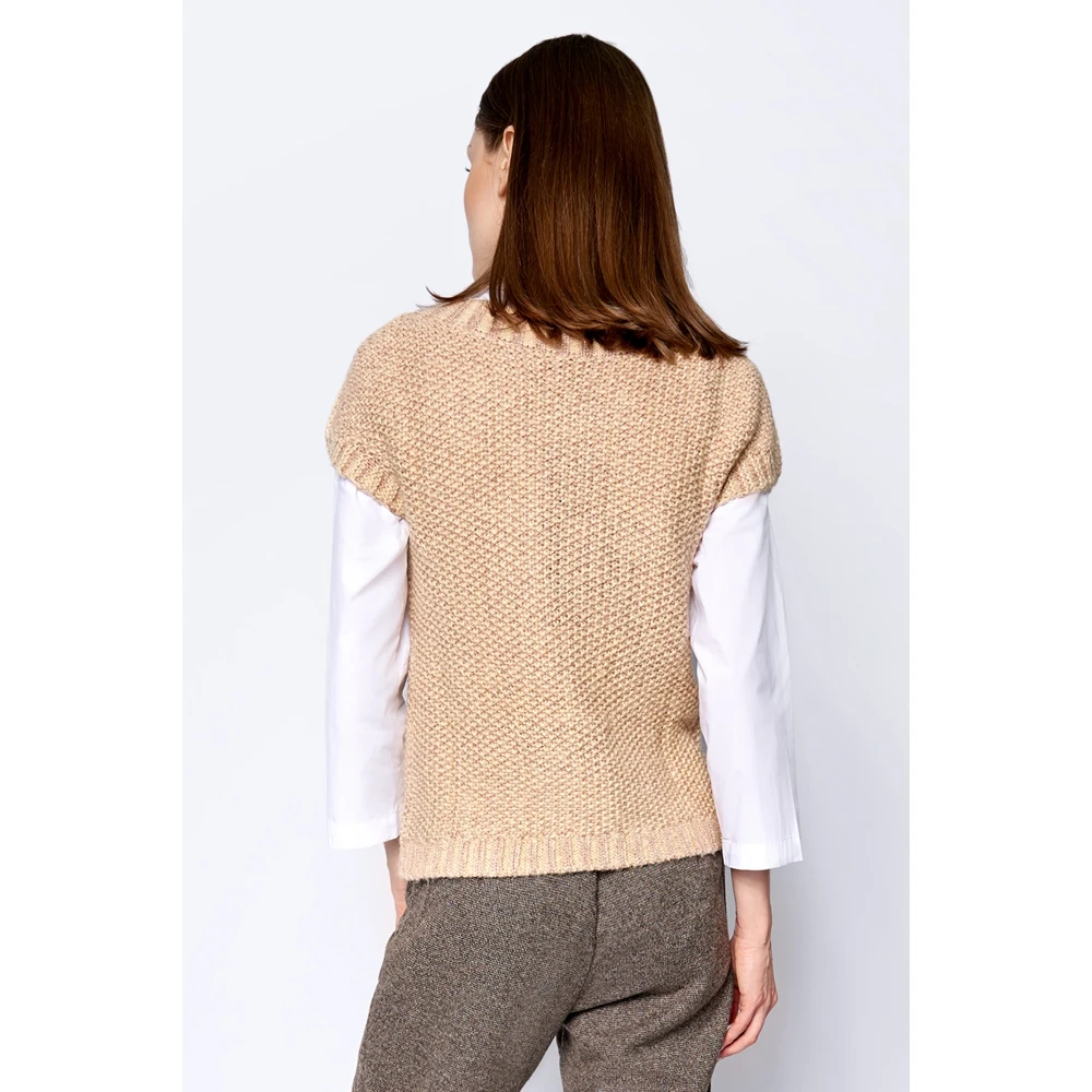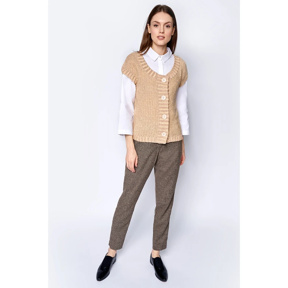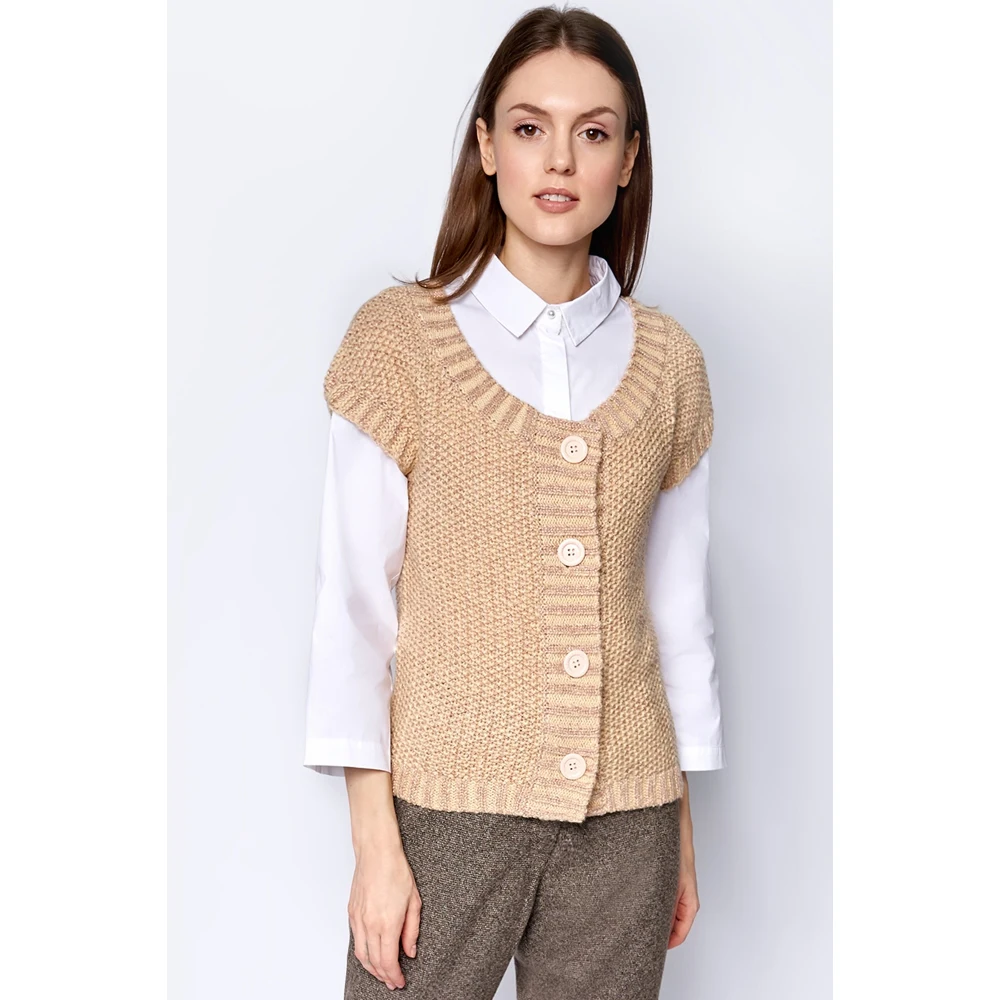 Производитель: Россия. Коллекция: ОСЕНЬ-ЗИМА 2019/2020. ~ "О мой бохо!" - воскликнете вы и будете правы. Уютный вязаный жилет идеально подходит для составления образов с нотками богемного шика. Сочетайте его с воздушными блузками или нежными платьями. Впрочем, даже с водолазкой получится неплохой вариант. тепло натуральной шерсти и фактура мохера фактурная вязка "жемчужным" узором застёжка на крупные пуговицы планки, связанные эластичной резинкой деликатное мерцание люрекса .