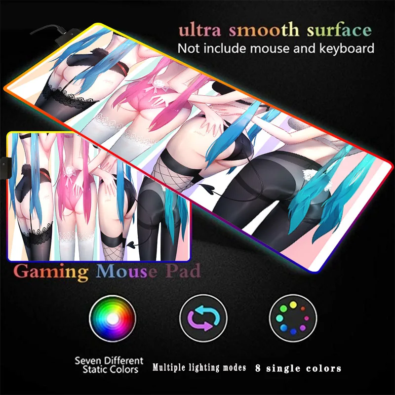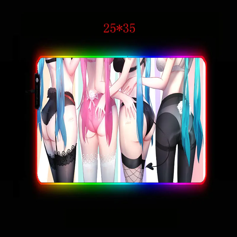 Большой светящийся игровой коврик для мыши с аниме сексуальной попой RGB XXL, компьютерный коврик светодиодный Ной подсветкой, коврик для мыши, Настольный коврик для клавиатуры CSGO, коврик для ПК