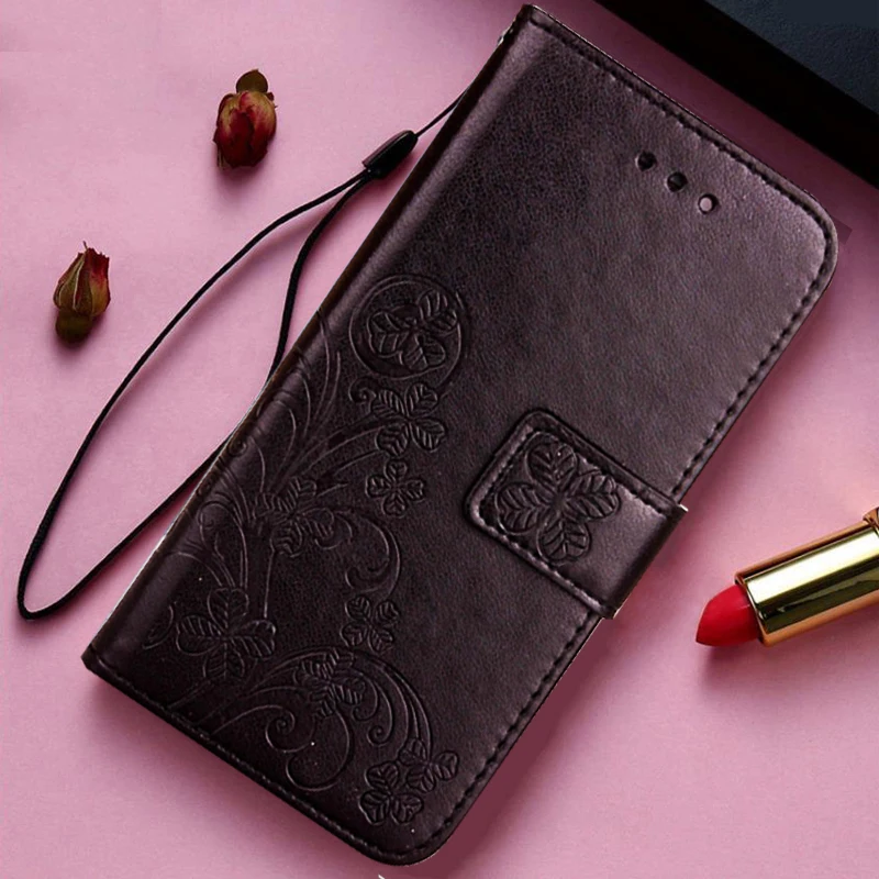 Кожаный чехол-бумажник с подставкой и цветочным рисунком для телефо...
