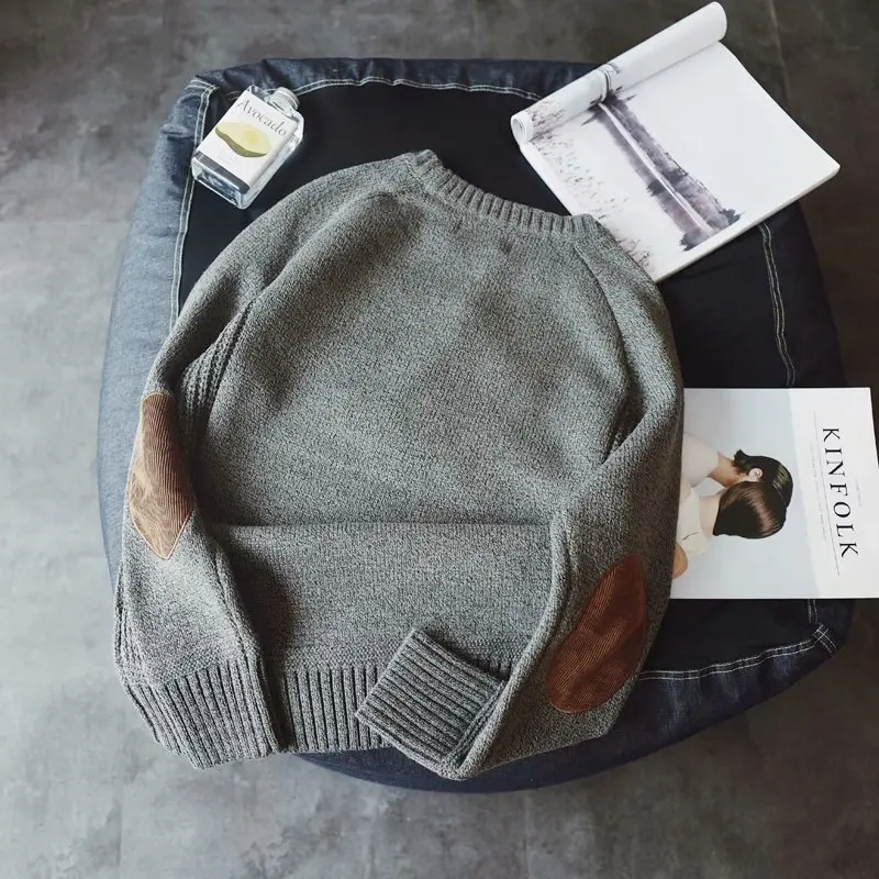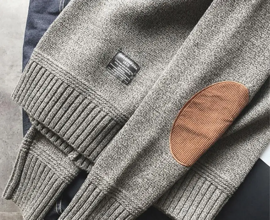 Свитер мужской, плотный, с нашивками, Осень-зима шерстяной пуловер ...