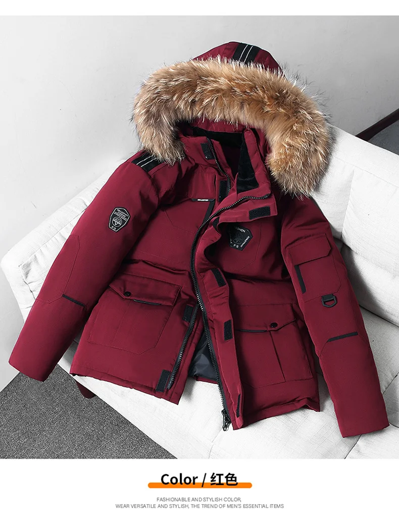 Мужской пуховик с большим воротником из натурального меха, теплая п...