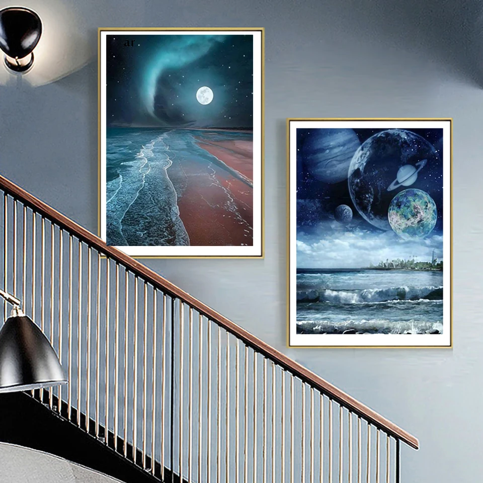 5D полноформатная алмазная живопись, пейзаж, луна, алмазная вышивка, живопись, вышивка крестиком, мозаика, картина сделай сам, украшение для дома, подарок