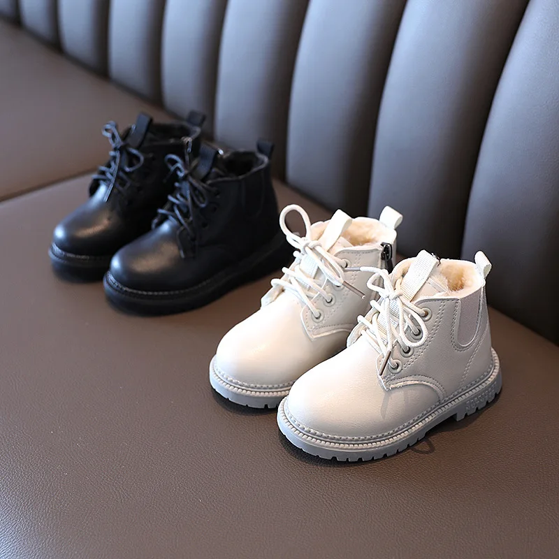 2021 Зимние Новые Стильные Детские Ботинки Martin с боковой молнией, бархатные хлопковые ботинки для детей, короткие ботинки для мальчиков и девочек, детская обувь