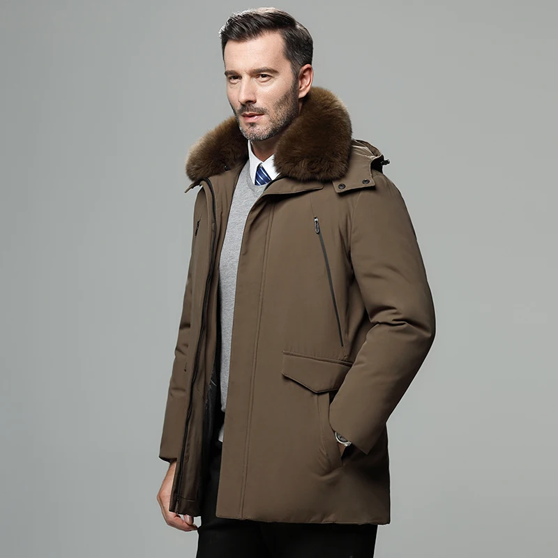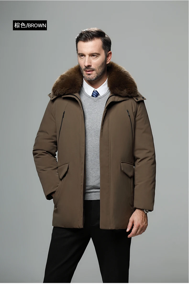Новинка 2020, мужское зимнее пальто, Высококачественная Мужская куртка, ветрозащитная теплая парка с капюшоном, уличное длинное пуховое пальто с воротником из натурального меха