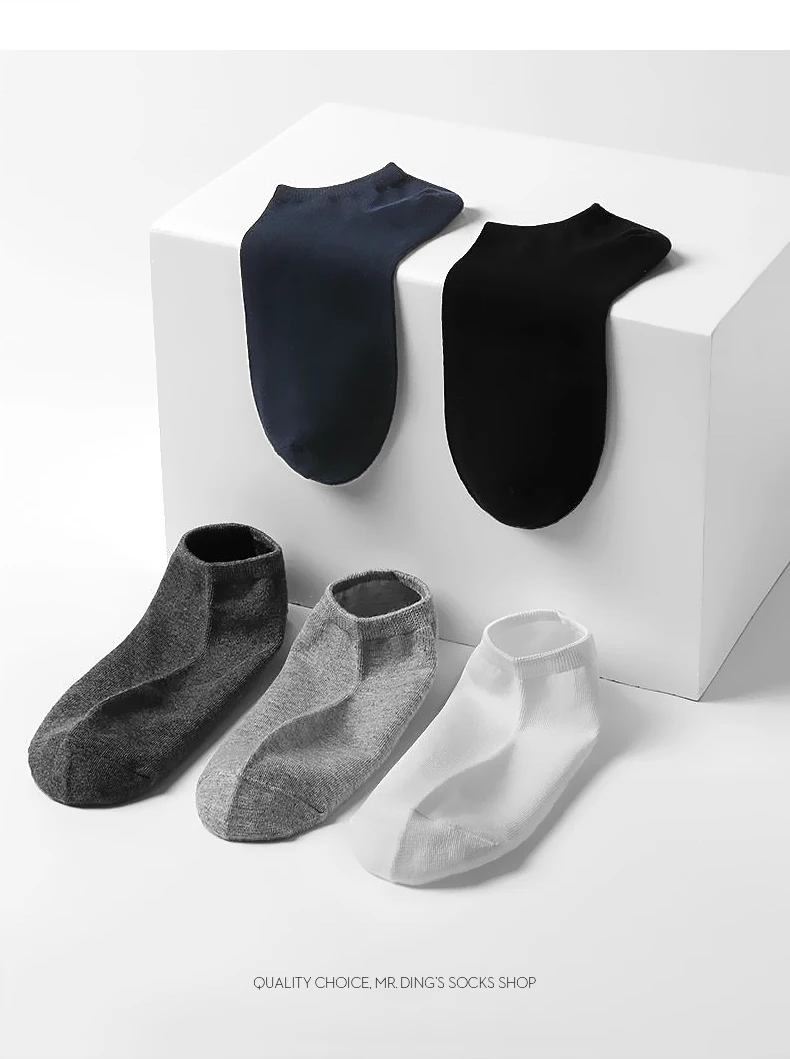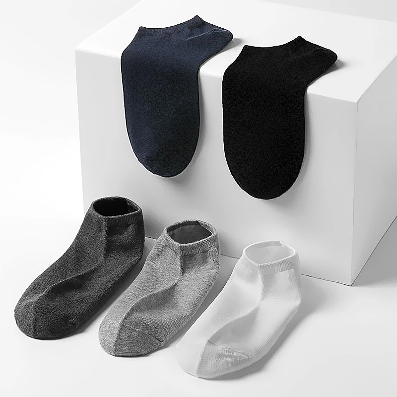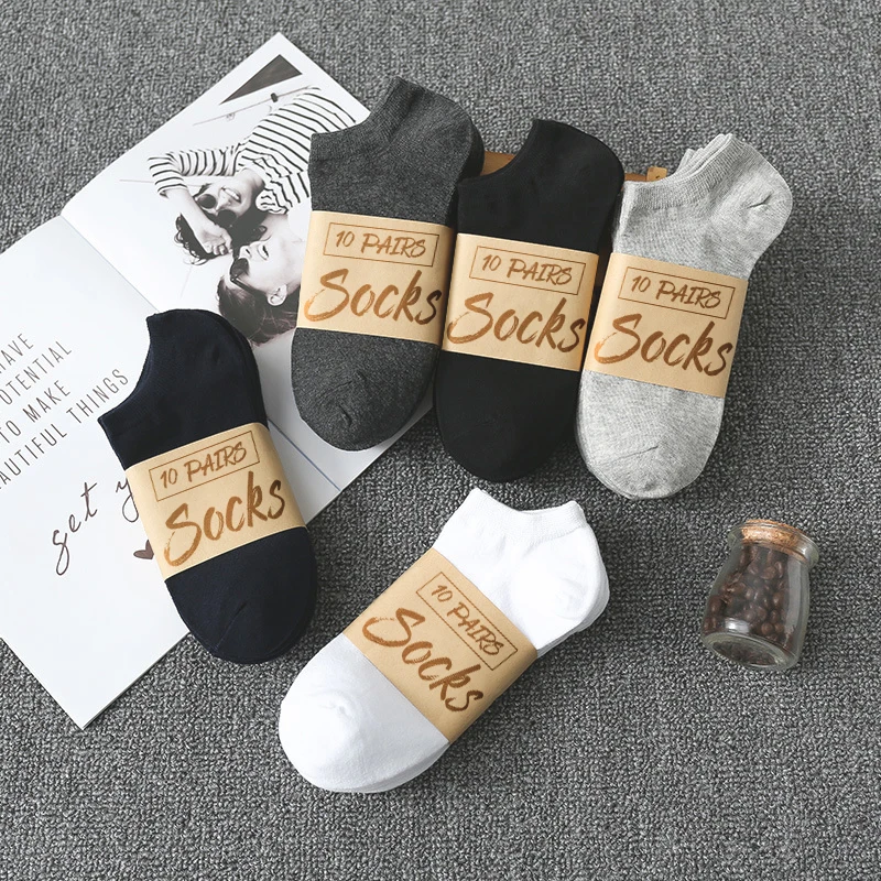 Носки мужские короткие 10 партЛот, однотонные дышащие хлопковые спортивные, черные белые серые, для деловых мужчин