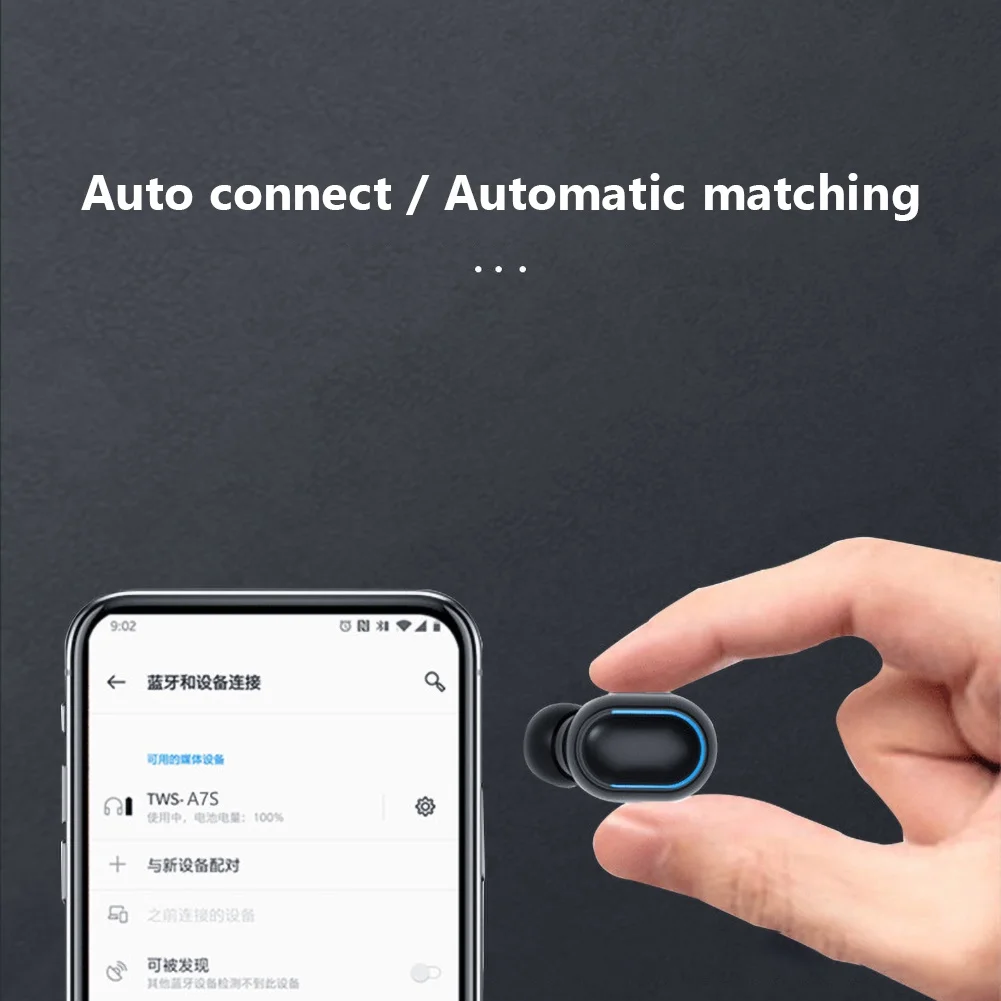 Название товара: беспроводные наушники Материал: АБС-пластик Модель: A7S (без цифрового дисплея)/E7S (с цифровым дисплеем) Версия Bluetooth: 5,0 Протоколы поддержки: A2DP, AVRCP, HSP, HFP Решение Bluetooth: для JieLi Эффективное расстояние: 10 м Метод сопряжения: Автоматическое Сопряжение после включения питания Декодирование: поддержка декодирования A2DP Чувствительность: 42dB Искажение: ± 5% Динамик Параметры: Ф6mm Емкость аккумулятора: 45 мАч для одного наушника, 300 мАч для зарядного устройства (в комплекте) Время воспроизведения музыки: 4 часа (в зависимости от громкости) Время работы в режиме разговора: 3 часа (в зависимости от объема) Время зарядки: 1 час Интерфейс зарядного устройства: Micro USB Водонепроницаемый уровень: IPX7 Характеристики: беспроводной, Bluetooth 5,0, встроенный, с зарядным устройством Зарядным устройством Размеры: 6,2 см x 4 см x 2,8 см/2,44 "x 1,57" x 1,10 "(прибл.)
