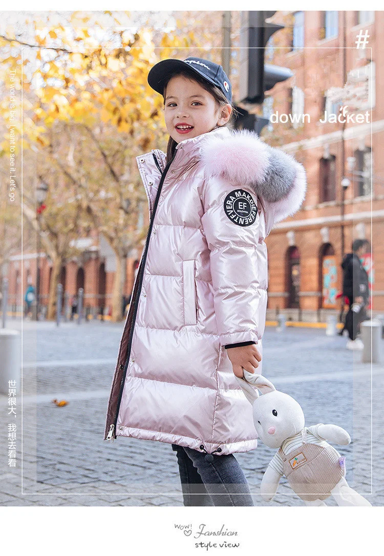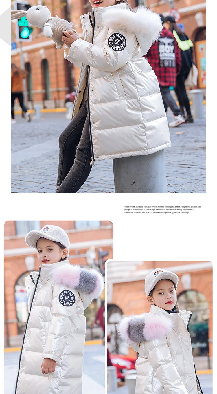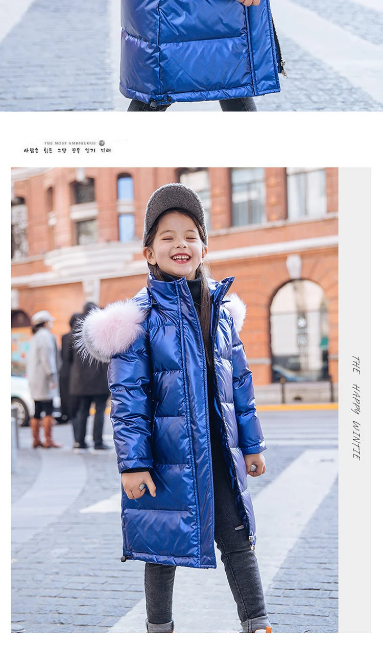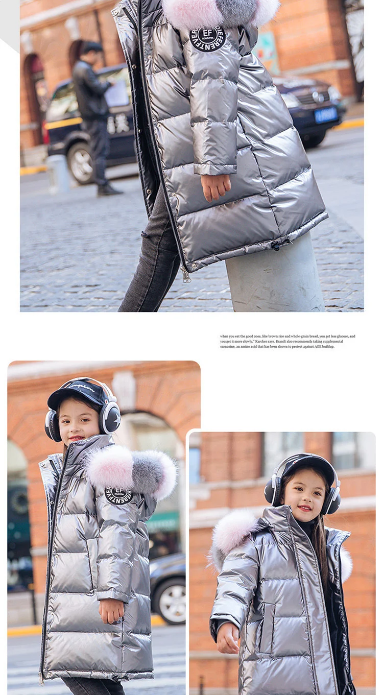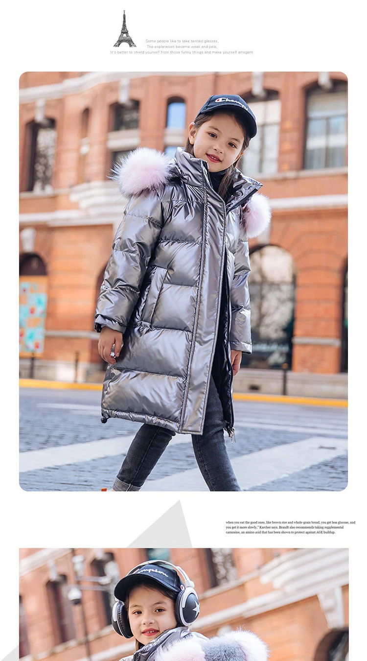 Детский Зимний пуховик для девочек, блестящее пальто на белом утино...