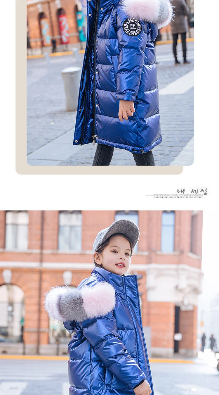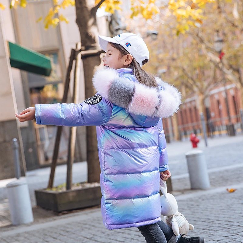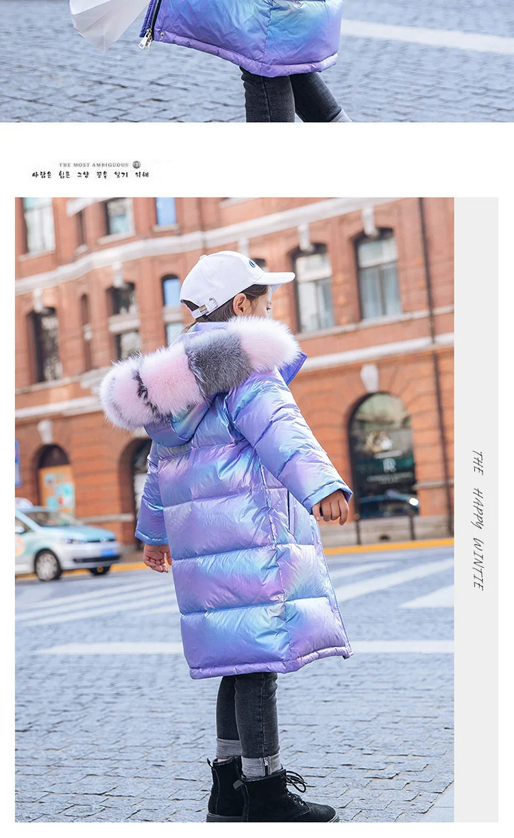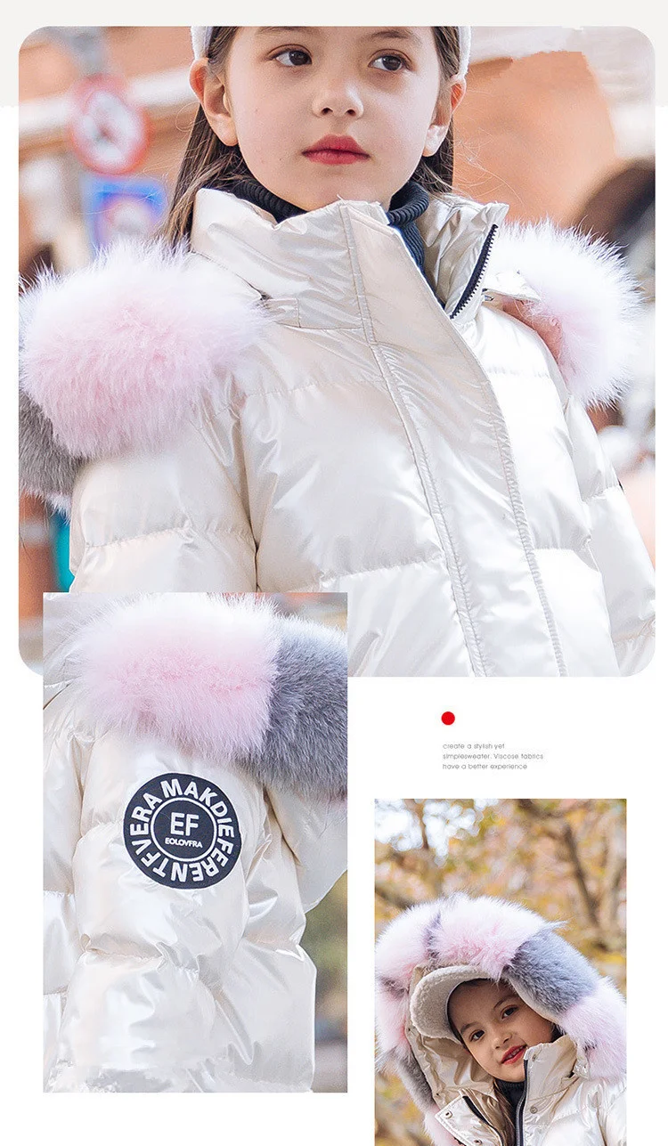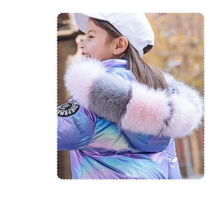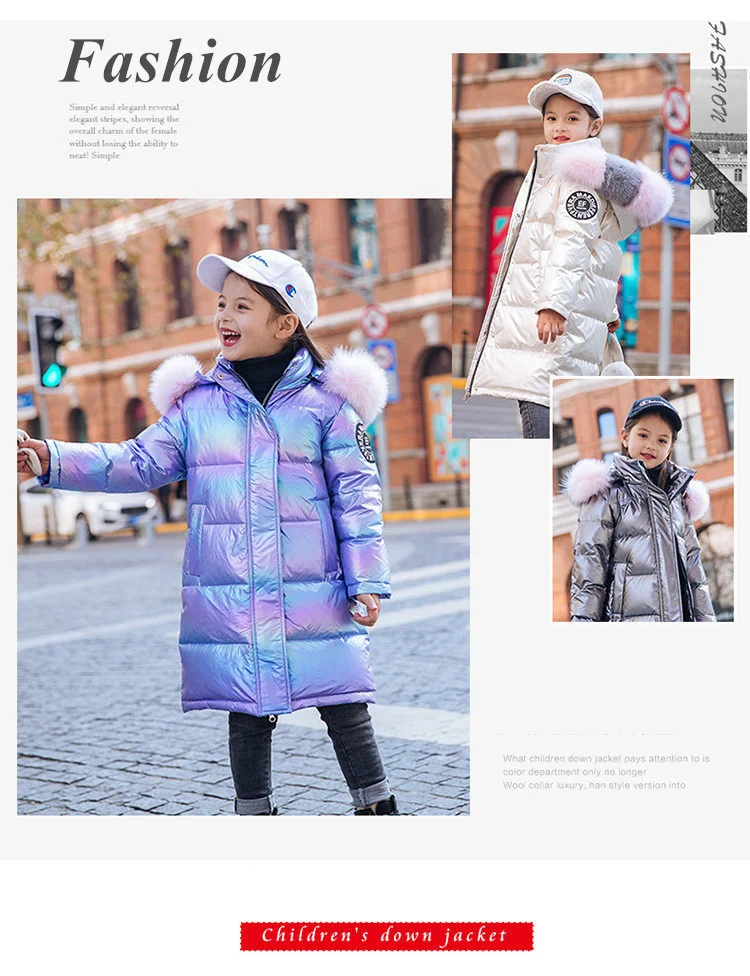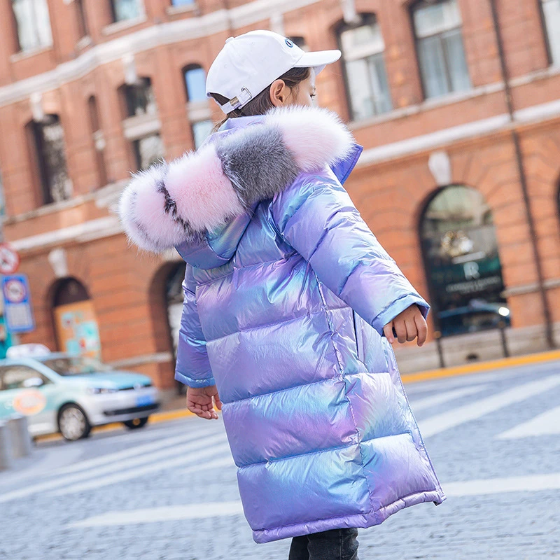 Детский Зимний пуховик для девочек, блестящее пальто на белом утино...