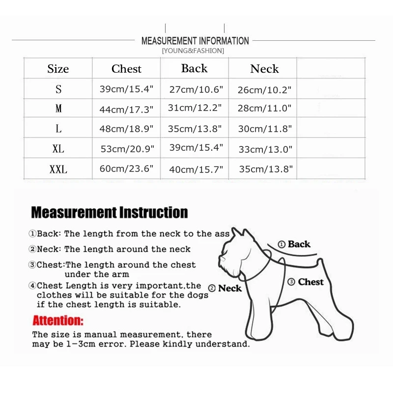 2. Для двух ног, пожалуйста, обратите внимание на обхват груди, и для четырех ног, должны соответствовать обхвату груди и длине спины.