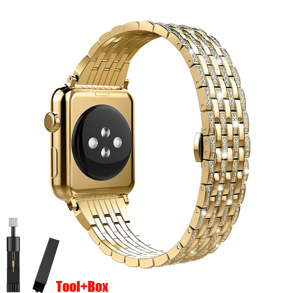 Роскошный Бриллиантовый ремешок для Apple watch band 40 мм 38 мм 41 мм 7/6/5/4/3/2/SE iwatch band 45 мм 42 мм 44 мм браслет из нержавеющей стали