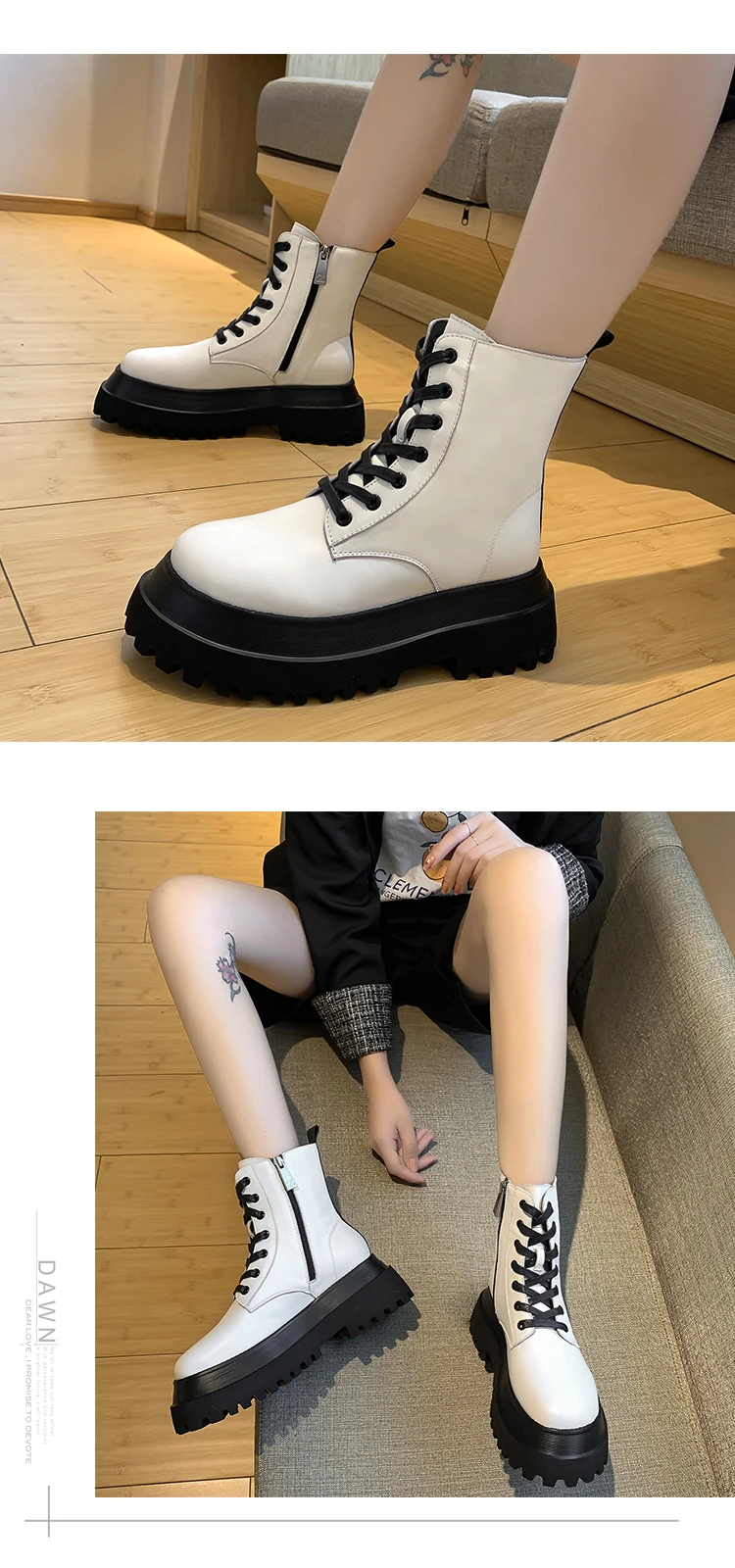 Женские ботильоны из мягкой кожи, белые мотоциклетные ботинки на пл...