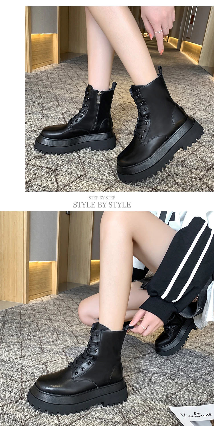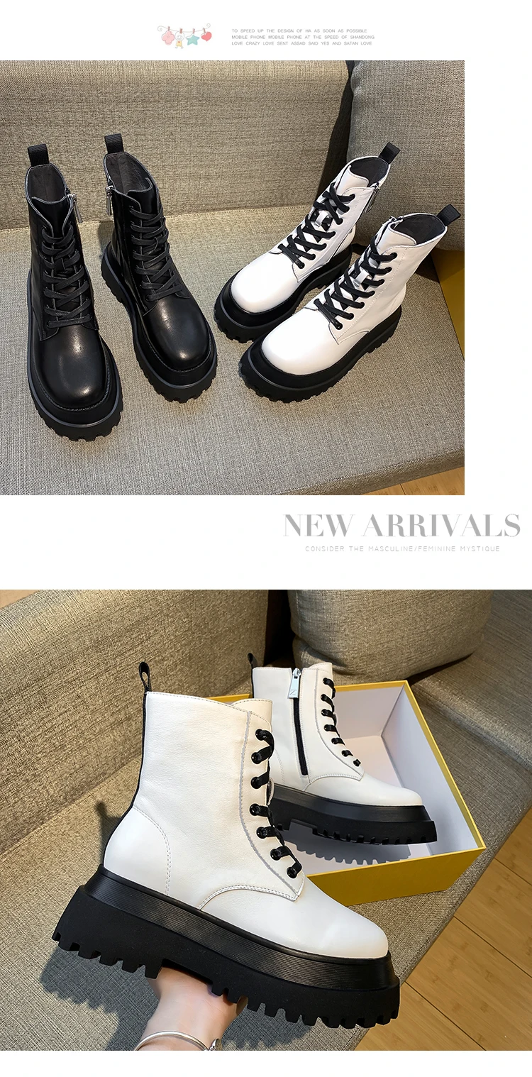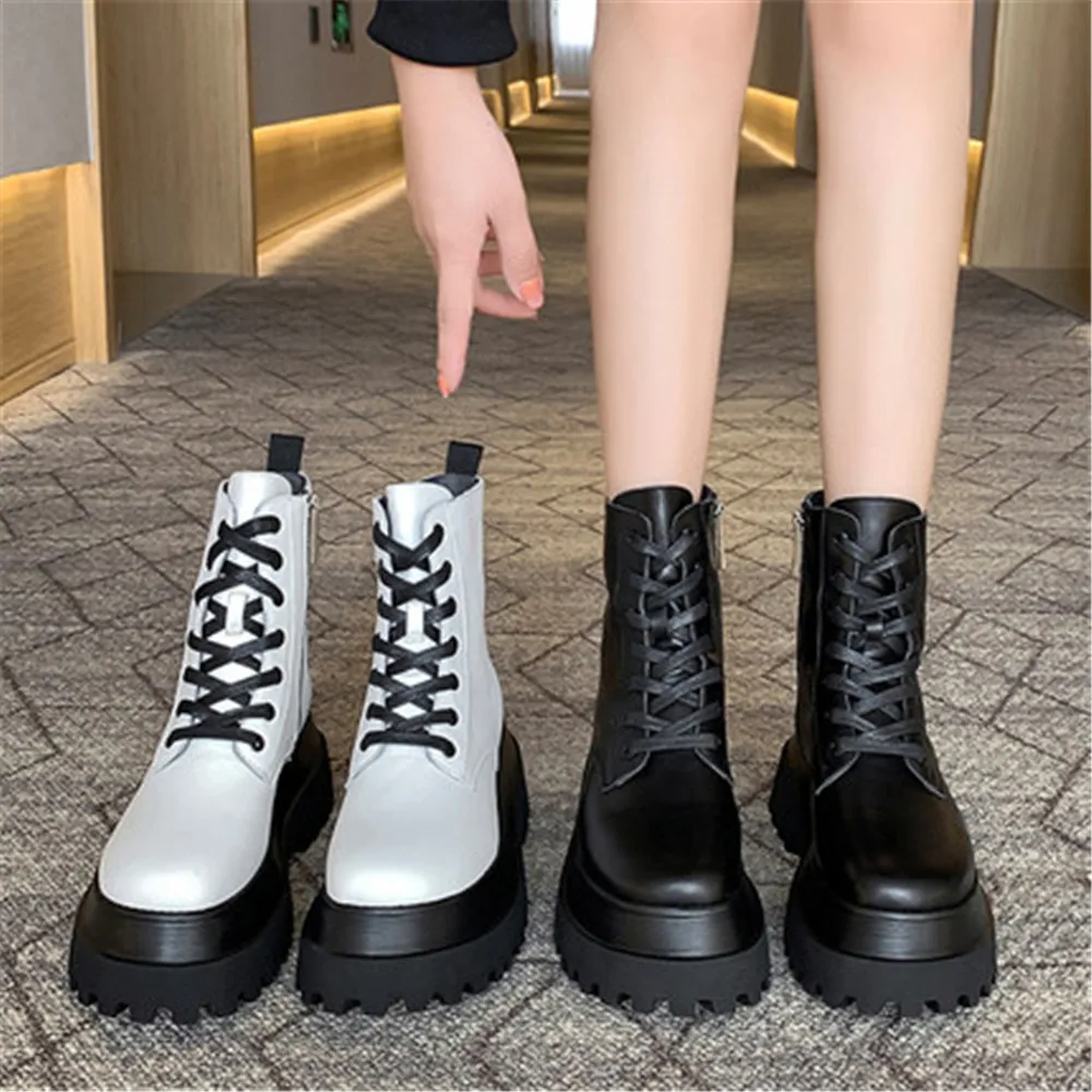 Женские ботинки из кожи, на толстой подошве, на шнуровке, осень 2020