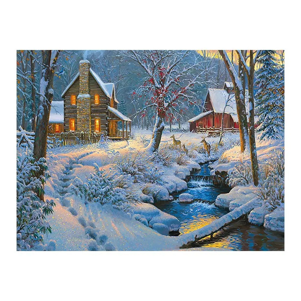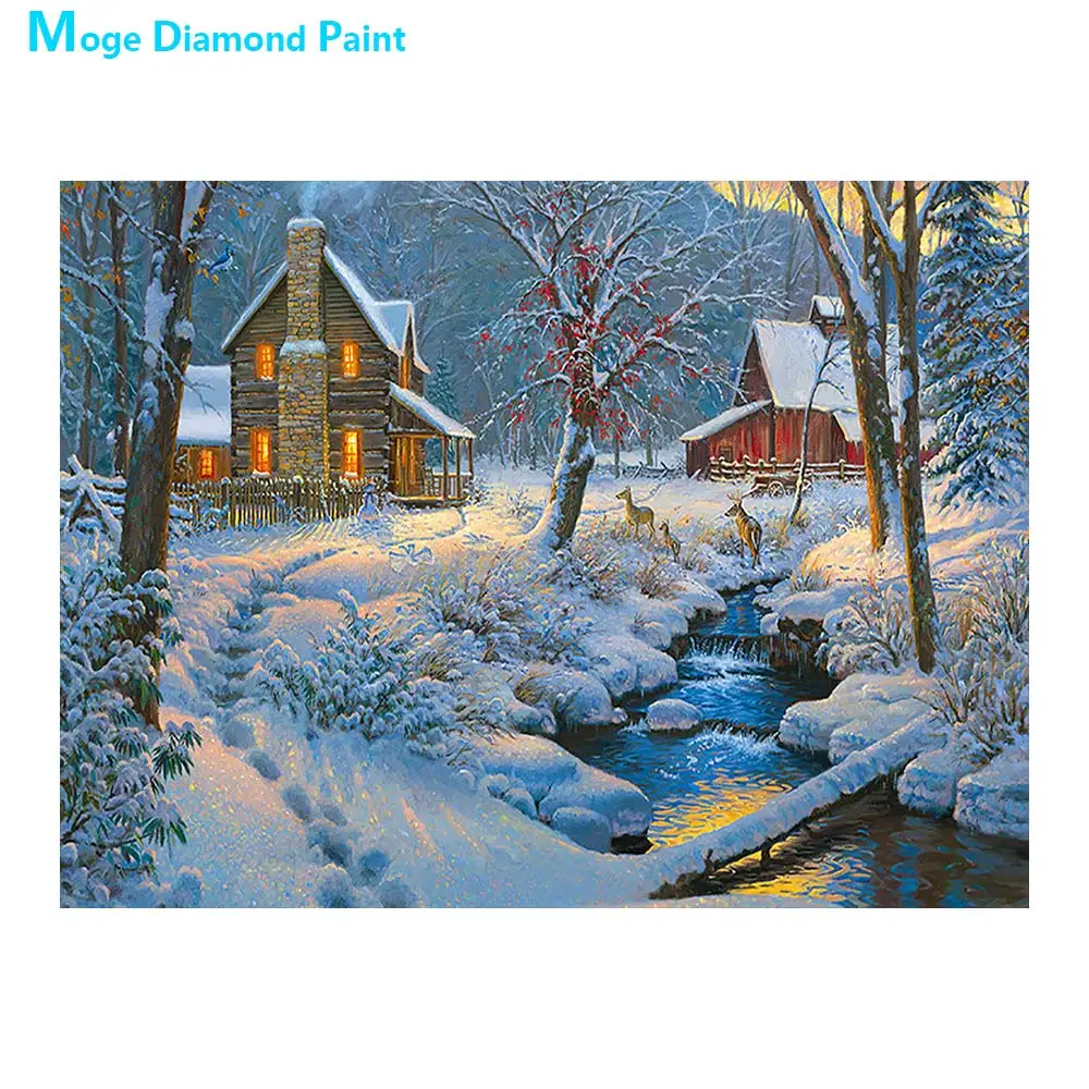 Снежный лес домик Алмазная картина круглая полная дрель живописный Nouveaute DIY мозаика вышивка 5D Вышивка крестом домашний декор подарки