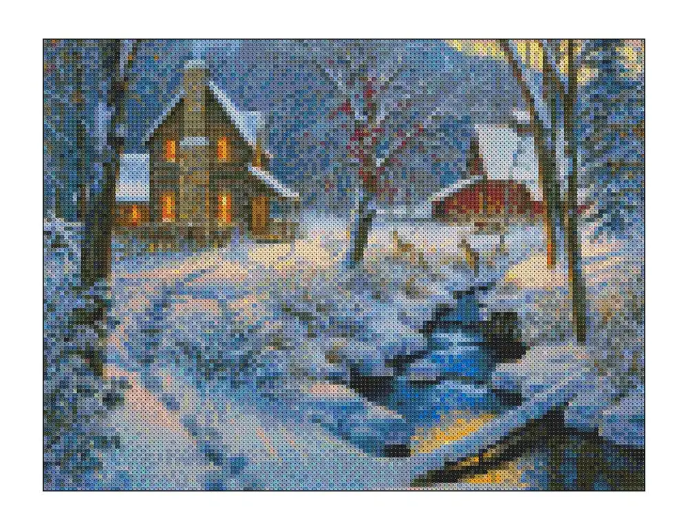 Зимняя снежная горная ферма Алмазная картина квадратная круглая пол...