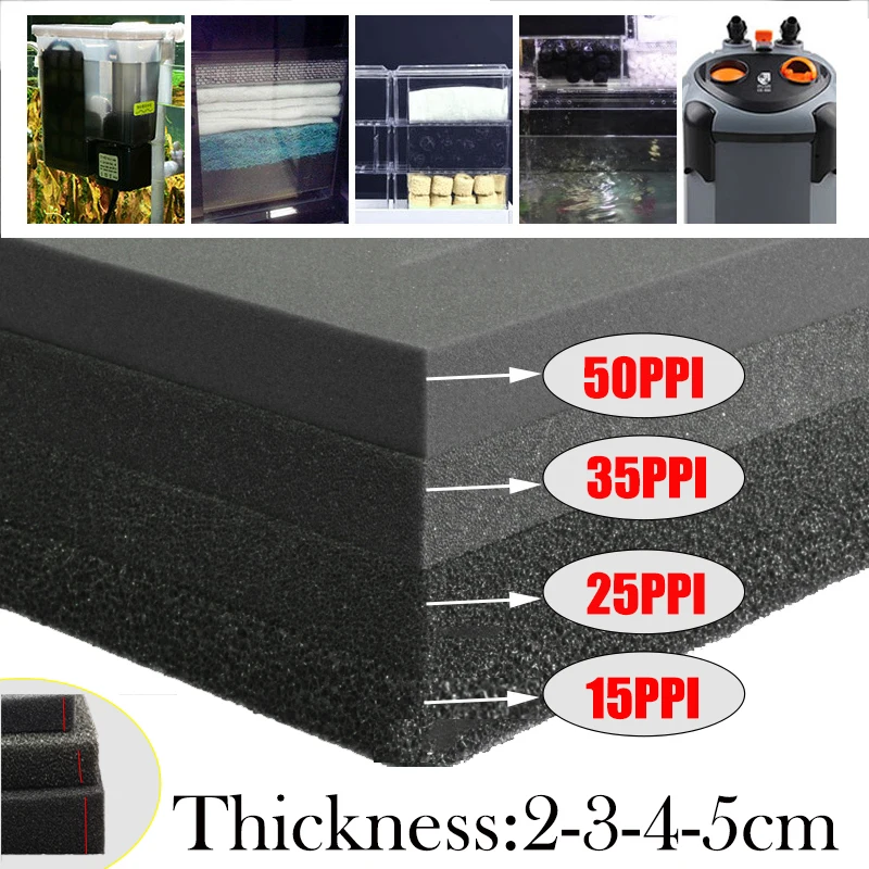 Аквариумные аксессуары, биохимическое украшение, хлопок Губка, аквариум, фильтр для аквариума, пруда, черная пена, губка, резервуар 15 25 35 50PPI