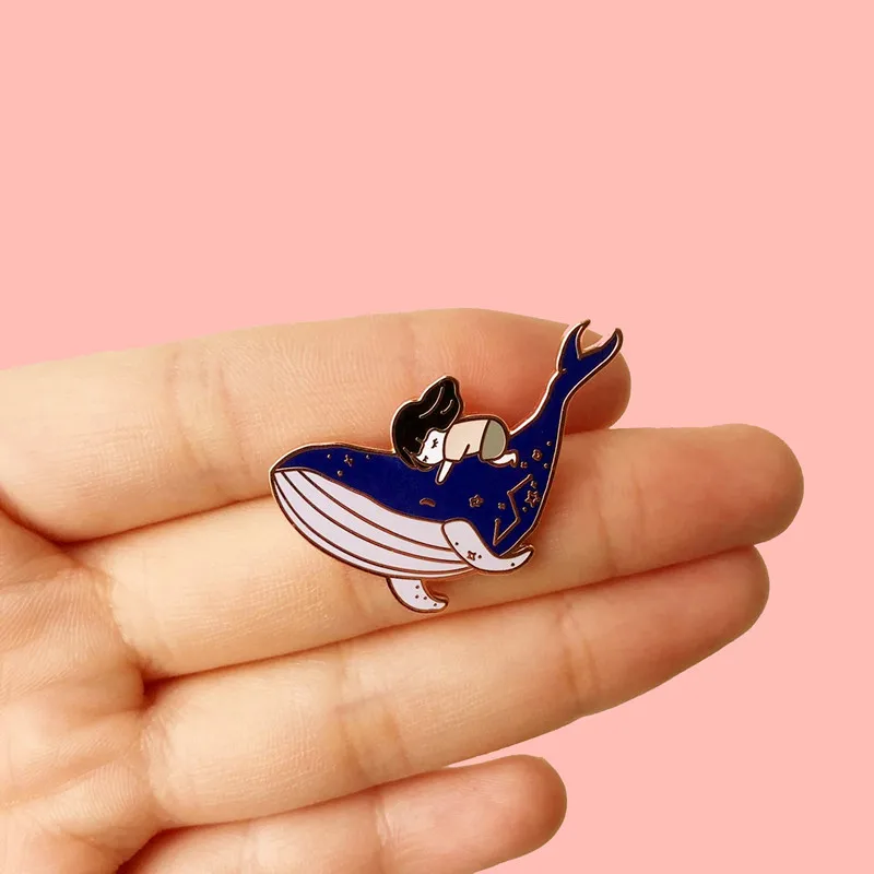 Эмалированная брошь с изображением Кита и девушки, значок, булавки на лацкан, модные ювелирные изделия из металлического сплава, подарки