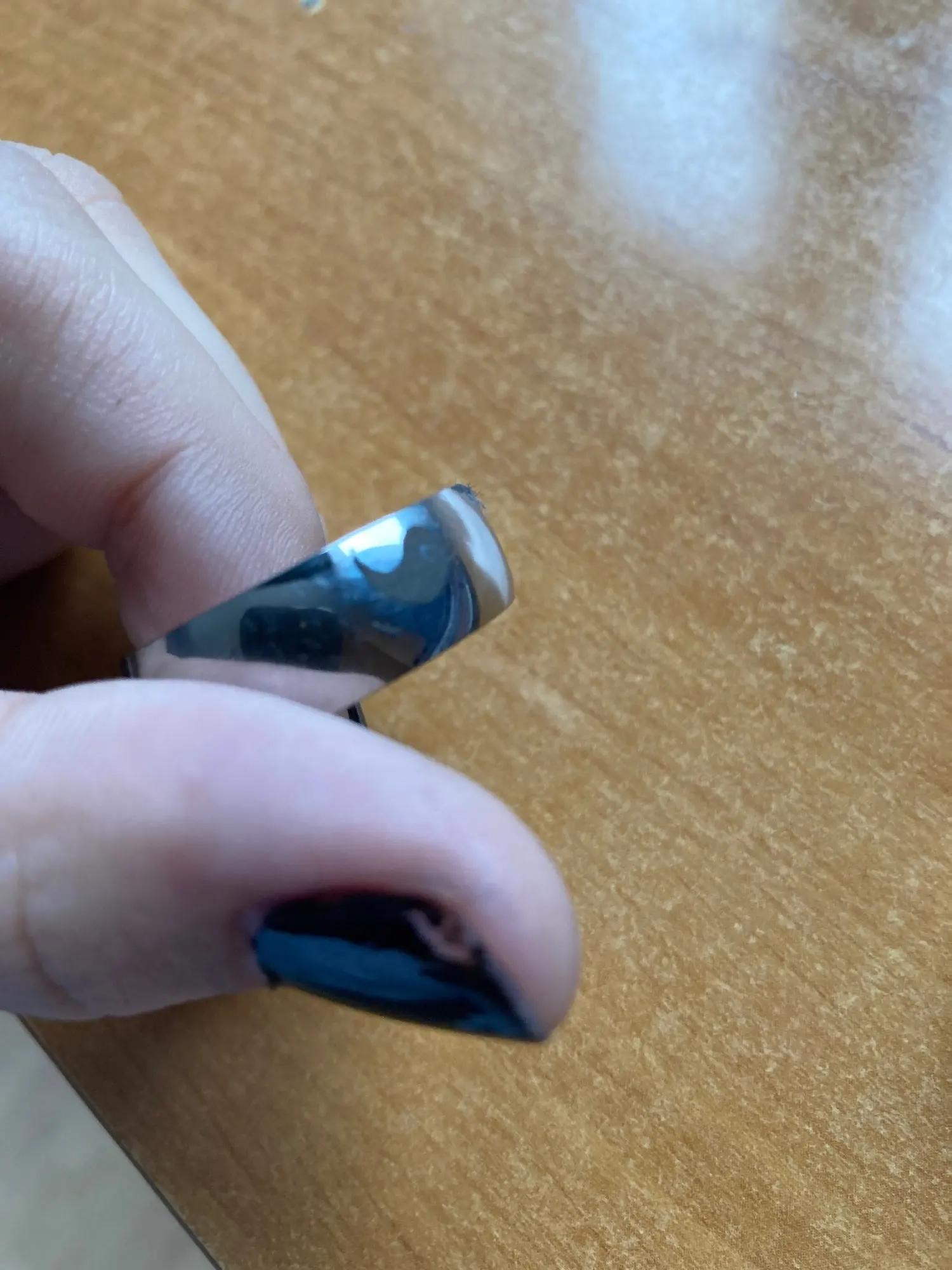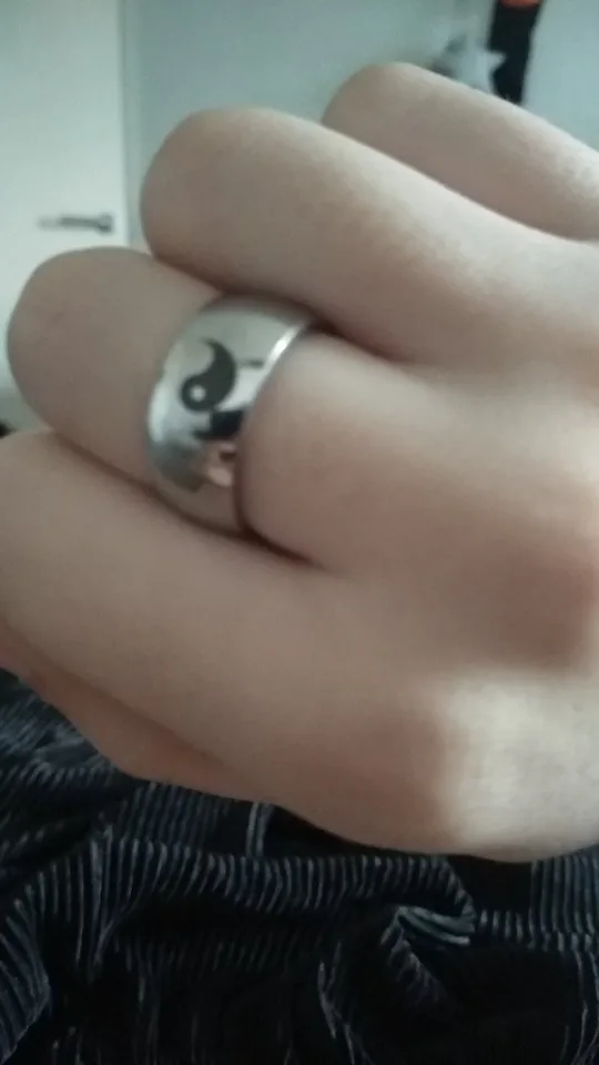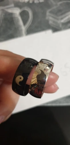 фото не соответствует. металл тоньше. серебристое кольцо вообще желтоватого оттенка, рисунка черного почти не видно и он серого цвета. выглядит не качественно. товар шел долго. размер не соответствует линейке. товар не рекомендую. продавец и алиэкспресс не принимают спор.