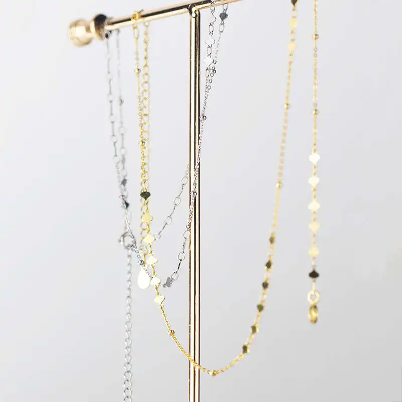 Красивая цепочка. Длину можно регулировать, цепляя за разные кольца. Смотрится интересно. Вставки с пластинками красиво переливаются при движении. Доставка быстрая.