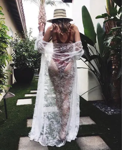 Женская черная, белая накидка на бикини, летнее сексуальное кружевное кимоно в стиле бохо, Пляжное длинное платье макси, прозрачный свободный кафтан, туника, купальник