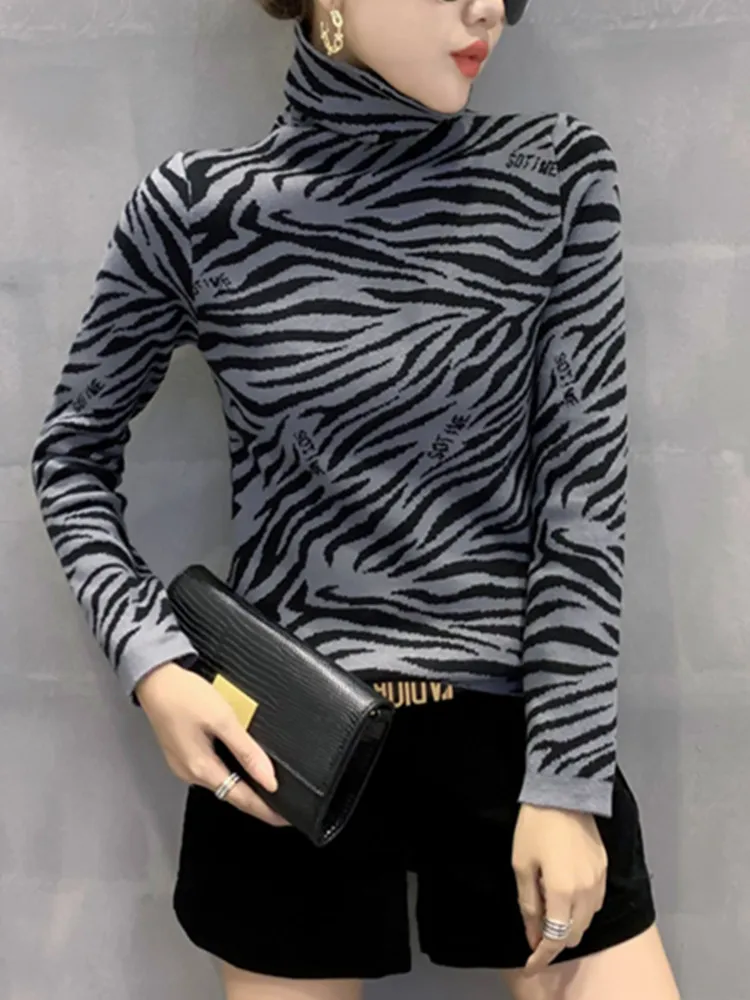 Женская водолазка в полоску, с длинным рукавом, T00301A