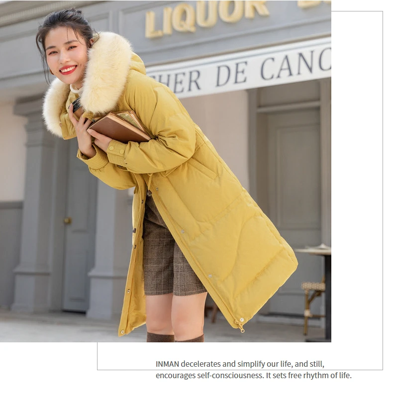 INMAN зимняя женская ветрозащитная верхняя одежда средней длины с меховым капюшоном