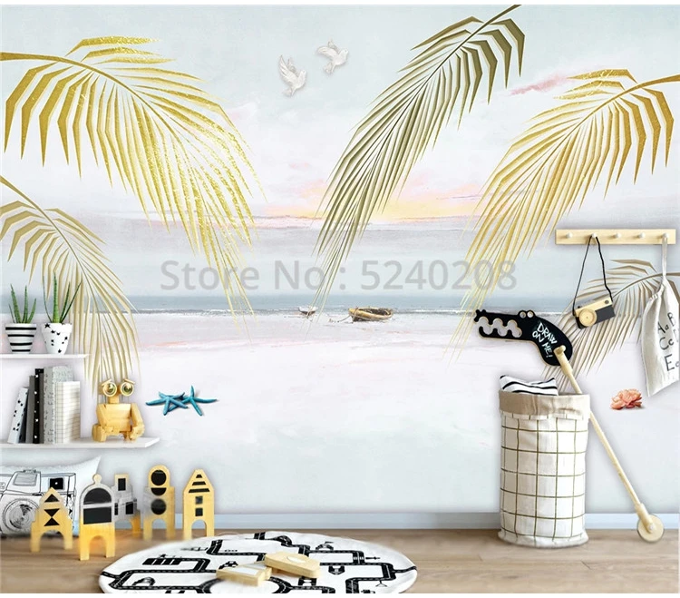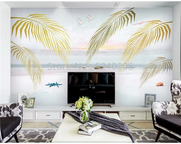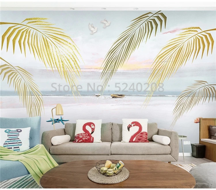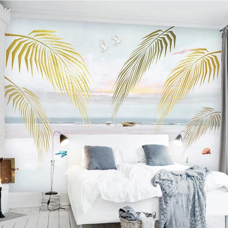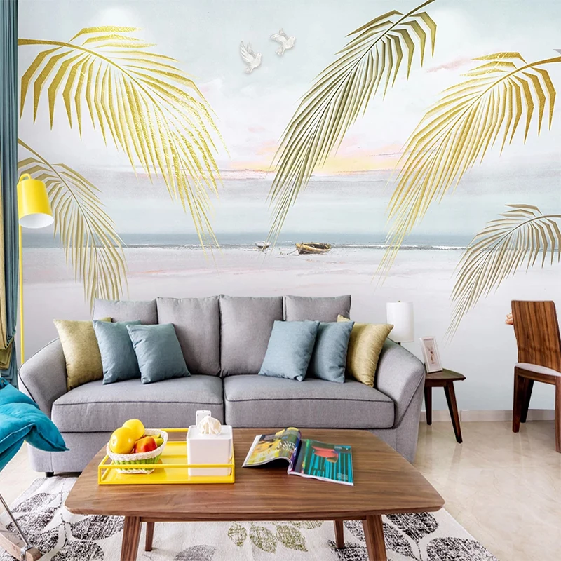 На заказ самоклеющиеся водонепроницаемые Настенные обои современный абстрактный морской пейзаж пальмовый лист Фреска для гостиной спальни настенные наклейки