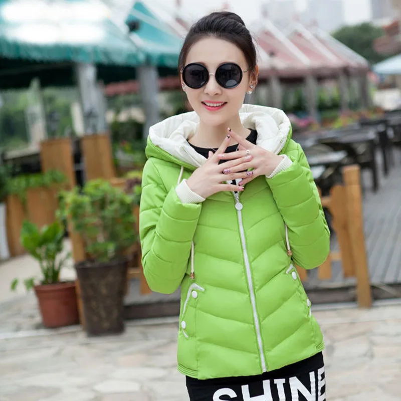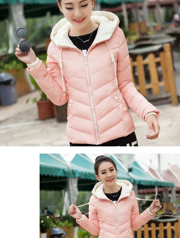 Одежда с хлопковой подкладкой, женская верхняя одежда с капюшоном, высокое качество, карманы на молнии, новая Корейская версия короткого тонкого теплого пальто