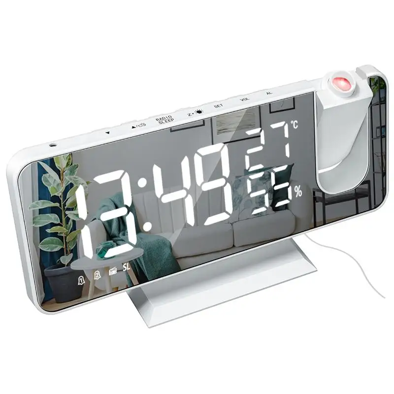 Светодиодный цифровой будильник с зеркальным проектором, радио с ре...
