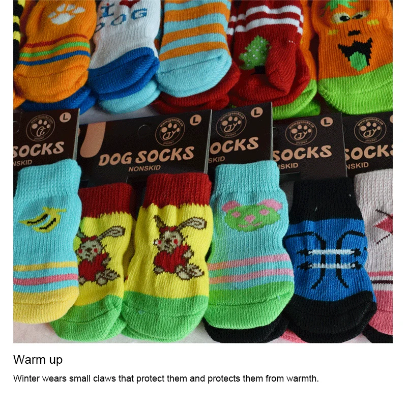 Носки с мультяшным принтом собаки, 4 шт.компл., обувь, ботинки, милая мягкая теплая Нескользящая трикотажная дышащая вязаная обувь разных типов для домашних животных, маленький кот SMLXL