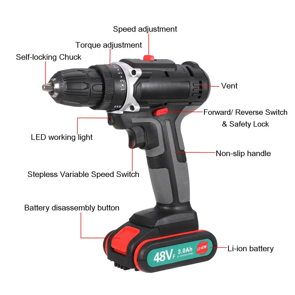 520N.m.2 шт.48V ионно-литиевая Батарея электрическая дрель 3/8 ''драйвер