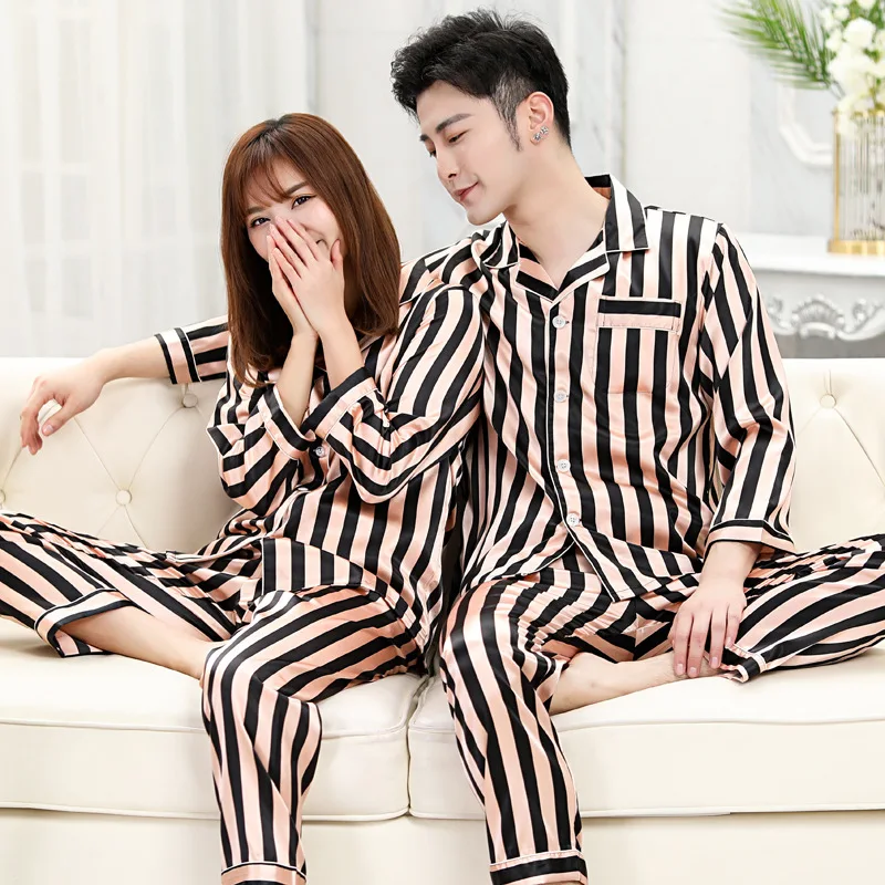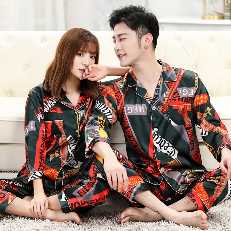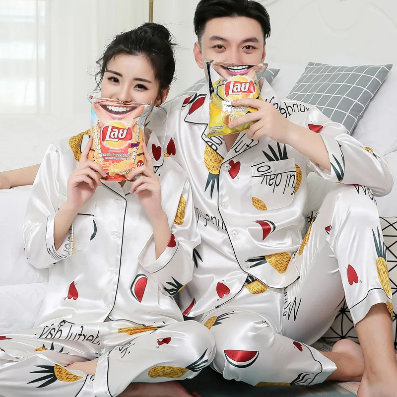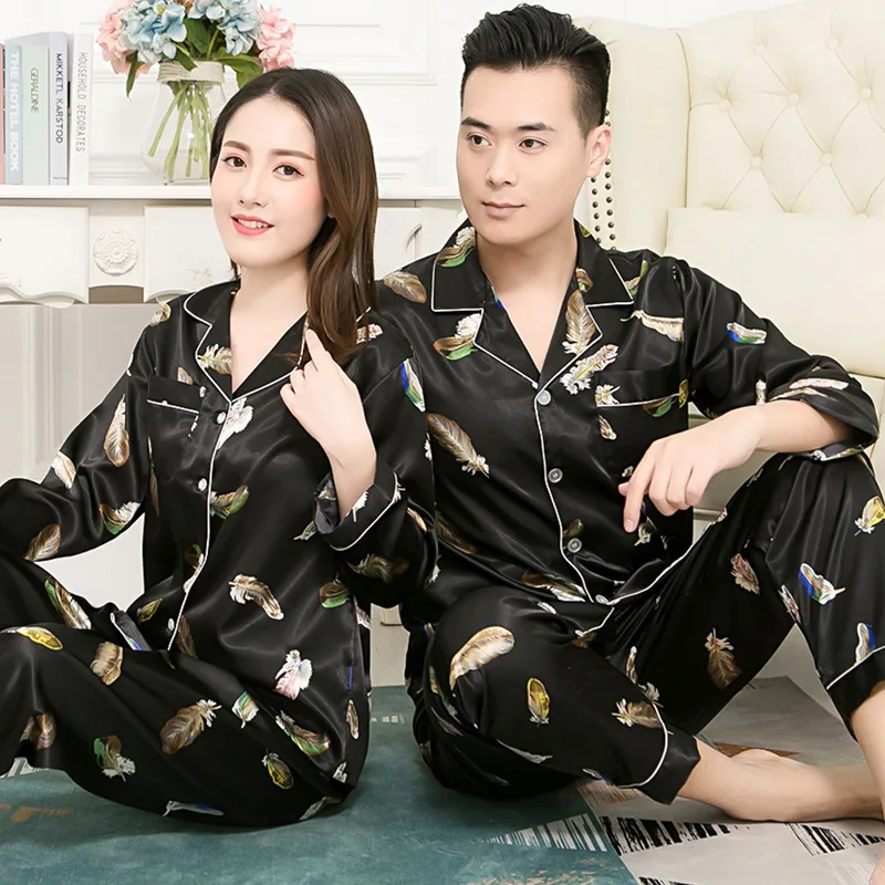 Набор шелковых атласных пижам FZSLCYIYI для пар, одежда для сна с длинным рукавом, длинные штаны, Пижамный комплект для женщин и мужчин, комплект из 2 предметов для сна, домашняя одежда