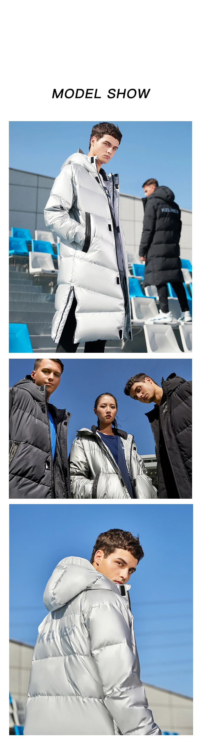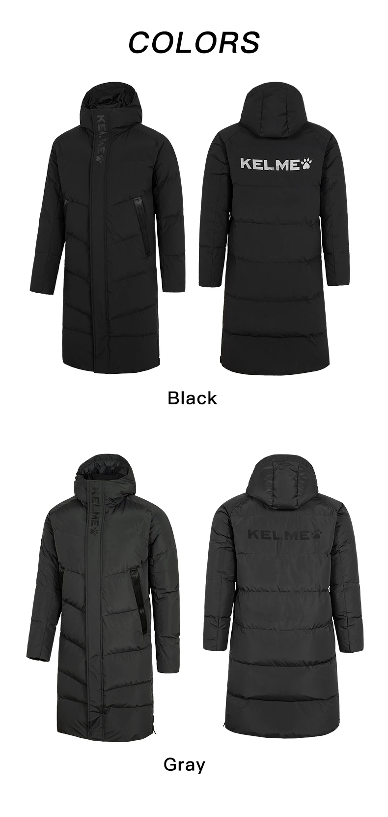 Зимний мужской пуховик KELME, серебристого цвета, с капюшоном, 90% Пух белой утки, теплая ветрозащитная спортивная куртка 8061YR1002