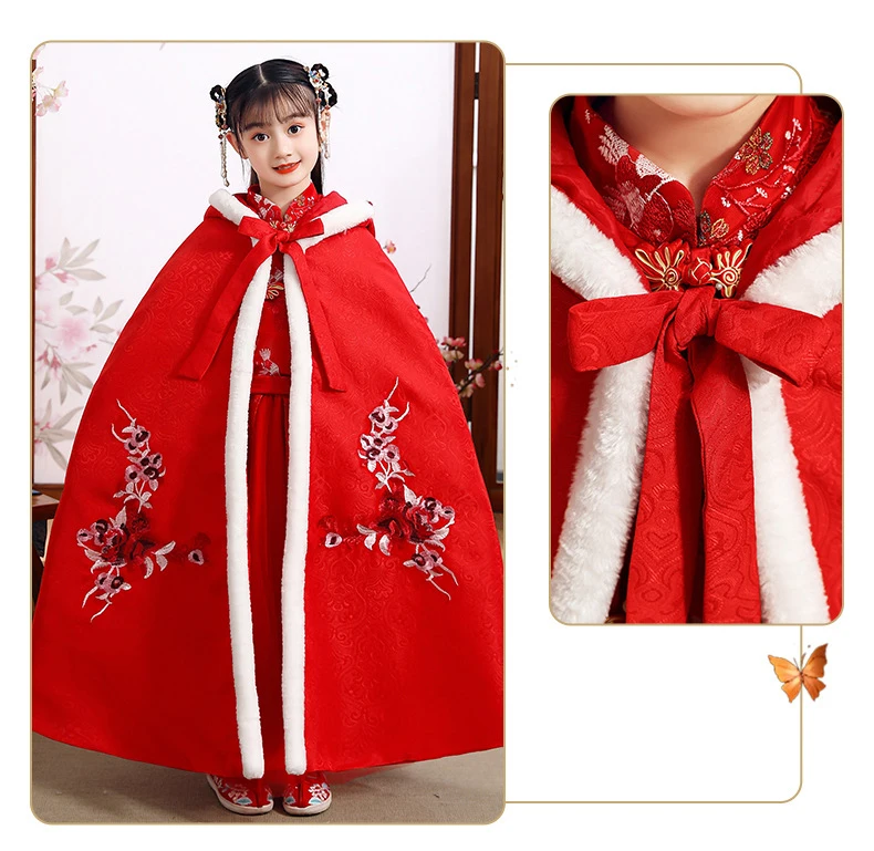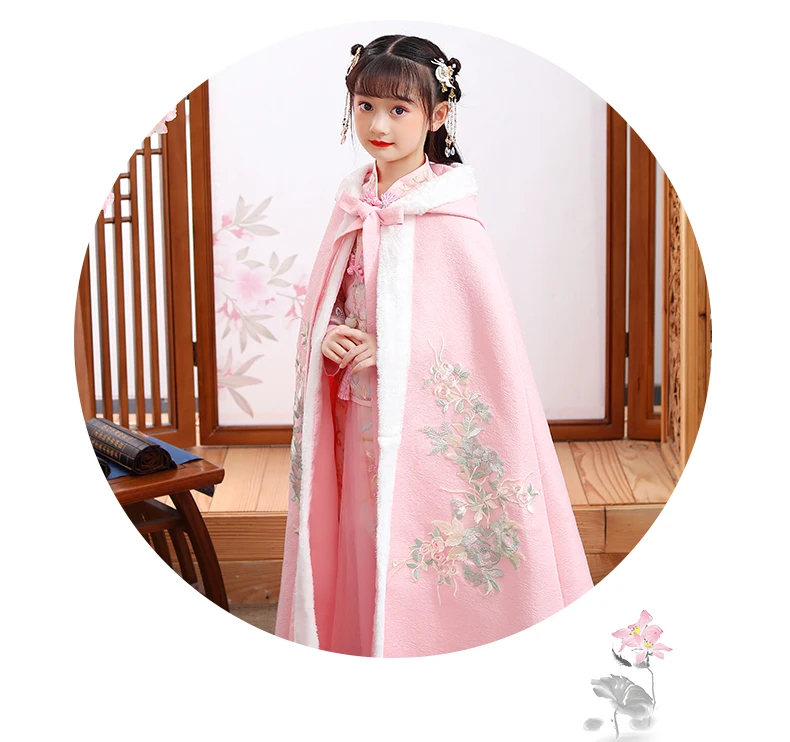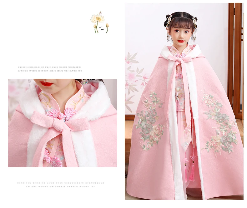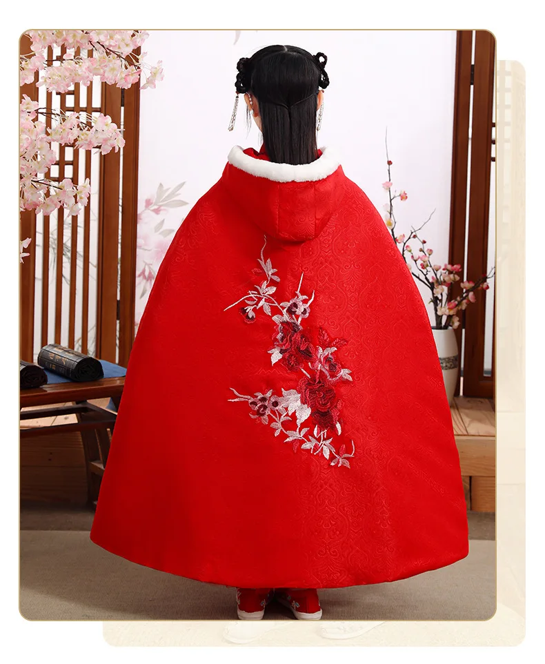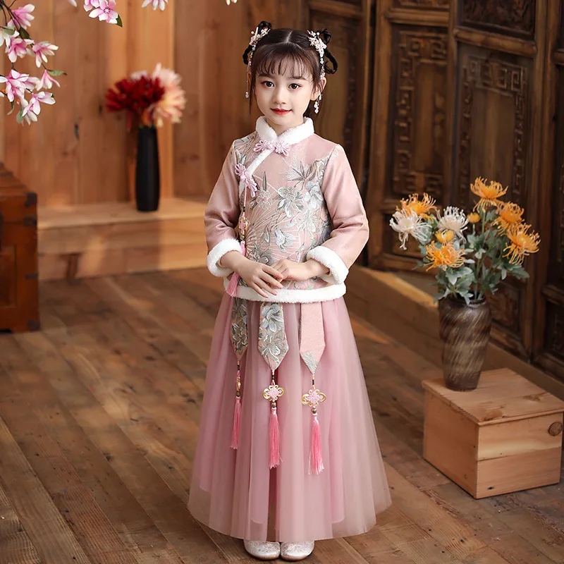 Осень-зима, новинка, платье с вышивкой для девочек, Hanfu Cheongsam, китайское традиционное свадебное платье с цветочным узором для девочек милое детское Новогоднее платье, одежда