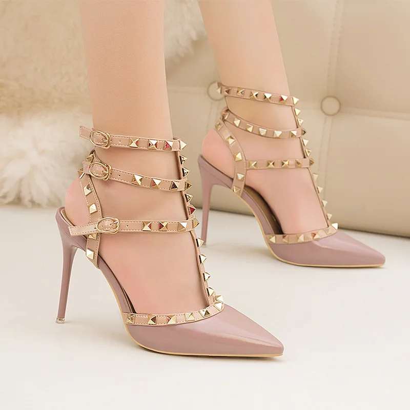 Римские модные сандалии с заклепками 10 см, цвет металлик