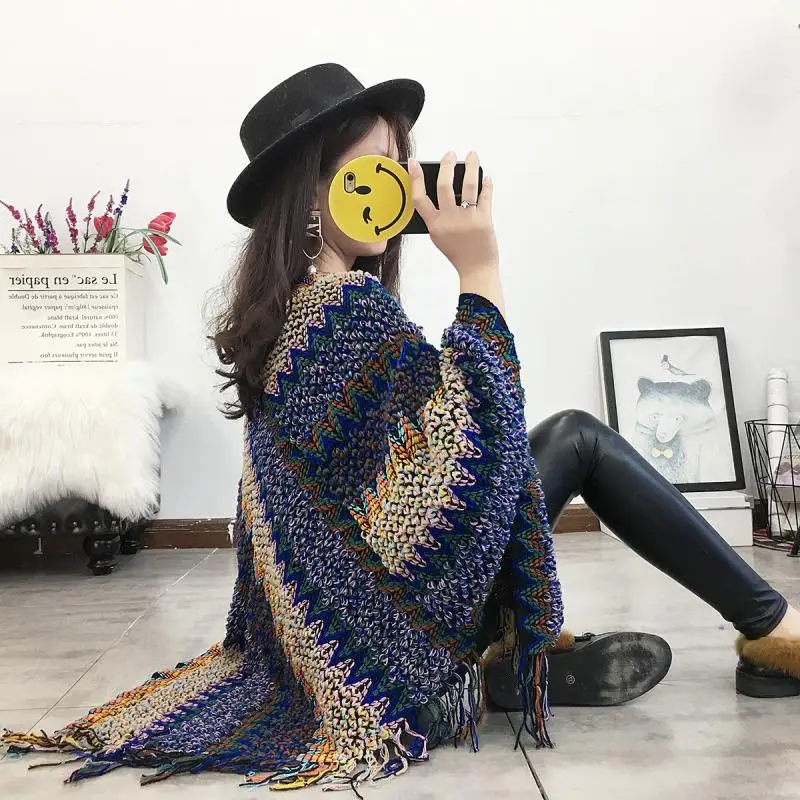 Вязаное пончо Swyivy, женский свитер-накидка с кисточками, осень 2020, новое, красное, богемное, удобное, женское пончо