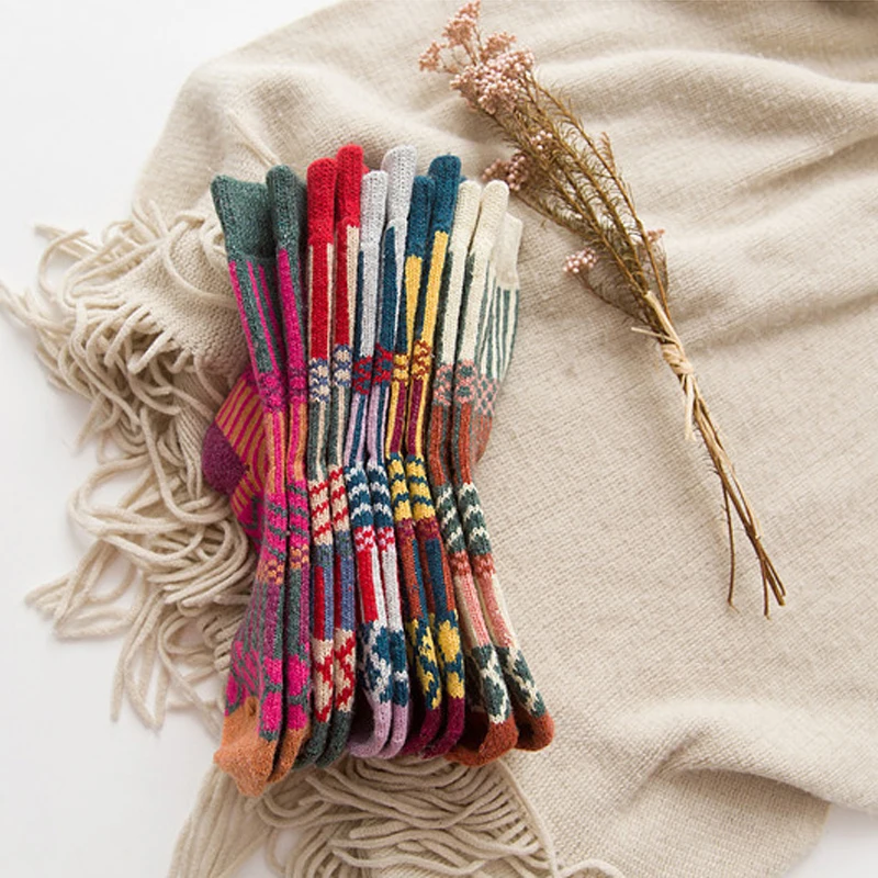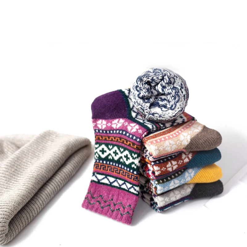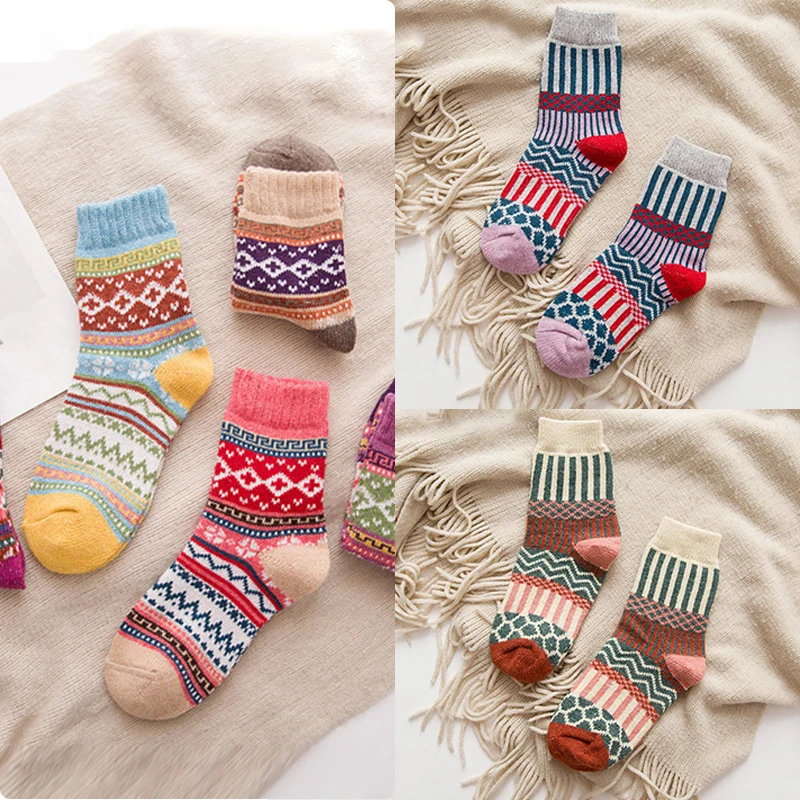 Носки женские из кроличьей шерсти, с вертикальными полосками