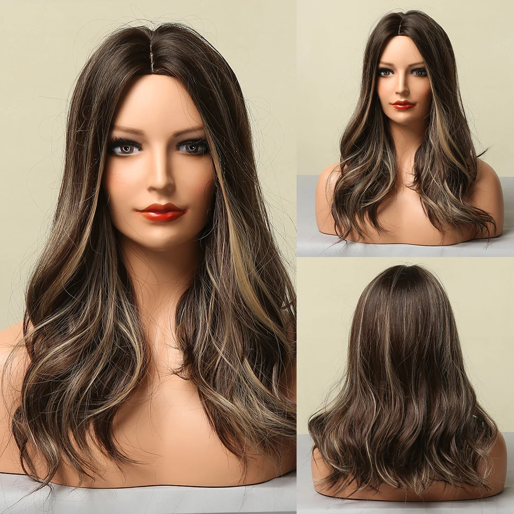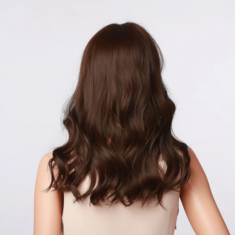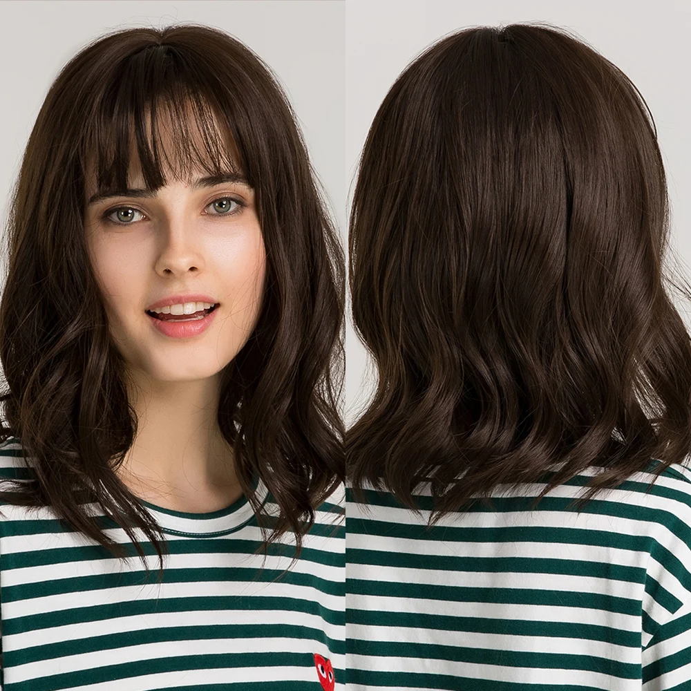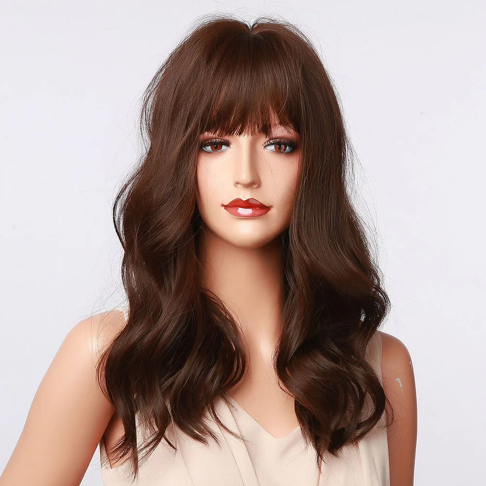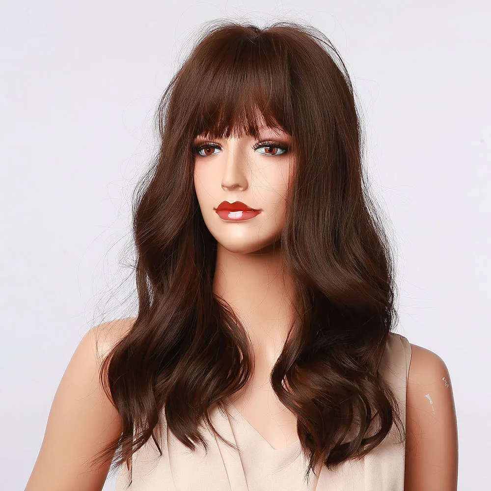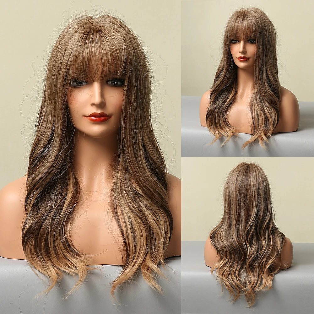 Длинные волнистые синтетические парики с челкой, темно-коричневые парики с эффектом омбре для женщин, повседневные парики для косплея, термостойкие натуральные парики
