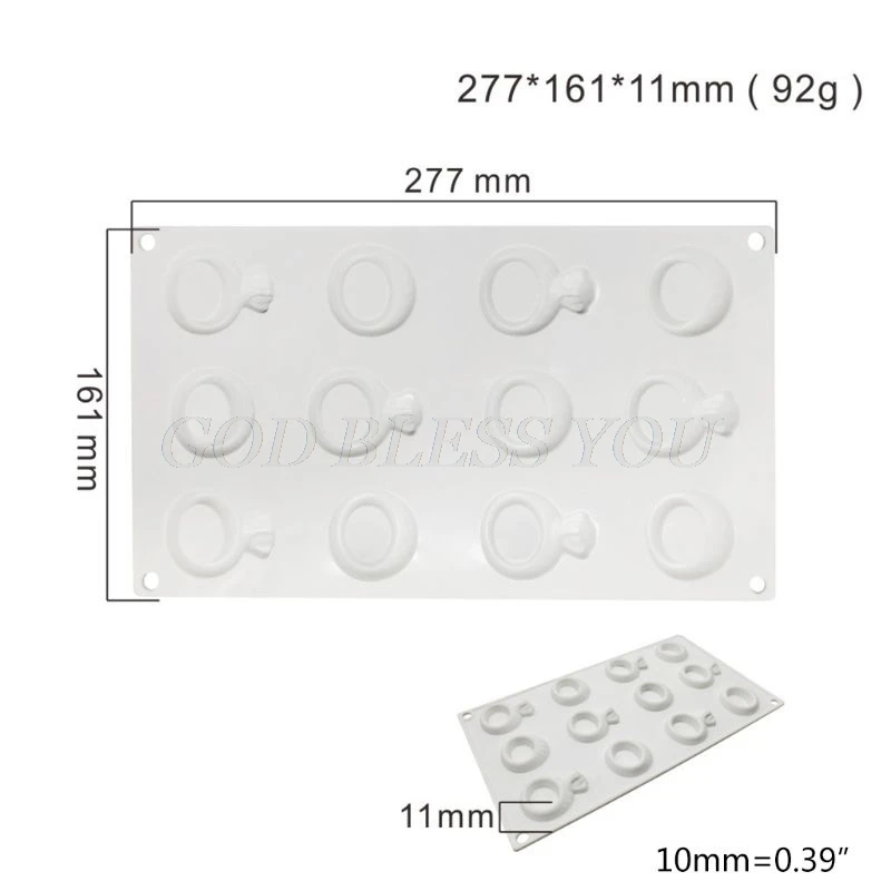 12 отверстий силиконовая форма для торта 3D Кекс желе мыло с запахом печенья Сделай Сам Инструменты для выпечки12 отверстий в форме кольца, силиконовые формы, набор форм для украшения торта, инструменты для выпечки, трюфели, конфеты, сковорода, десертная форма12 отверстий, форма для свадебного кольца, силиконовая форма для шоколада, конфет, набор форм для украшения торта, инструменты для выпечки, трюфель, шоколадные конфеты, форма для десерта100% новый и высокое качествоОсобенности:Классические и современные в то же время, формы позволяют сделать приготовления, характеризуется простым и гармоничным стилем.Уникальный дизайн благодаря специальной и инновационной кайме, расположенной в верхней части формы, которая придает определенную округлую форму основанию заготовок.Эта форма-очень Универсальная форма, подходит для мороженого и выпечки. Эта силиконовая форма может выдерживать температурные диапазоны от-60 °C (-76 °F) до + 230 °C (+ 446 °F). Потрясающий эффект при резке гарантирован!Спецификация:Материал силиконовой формы: безопасный для пищевых продуктов силиконЦвет: белыйДиапазон температур:-60 °C (-76 °F) и + 230 °C (+ 446 °F).