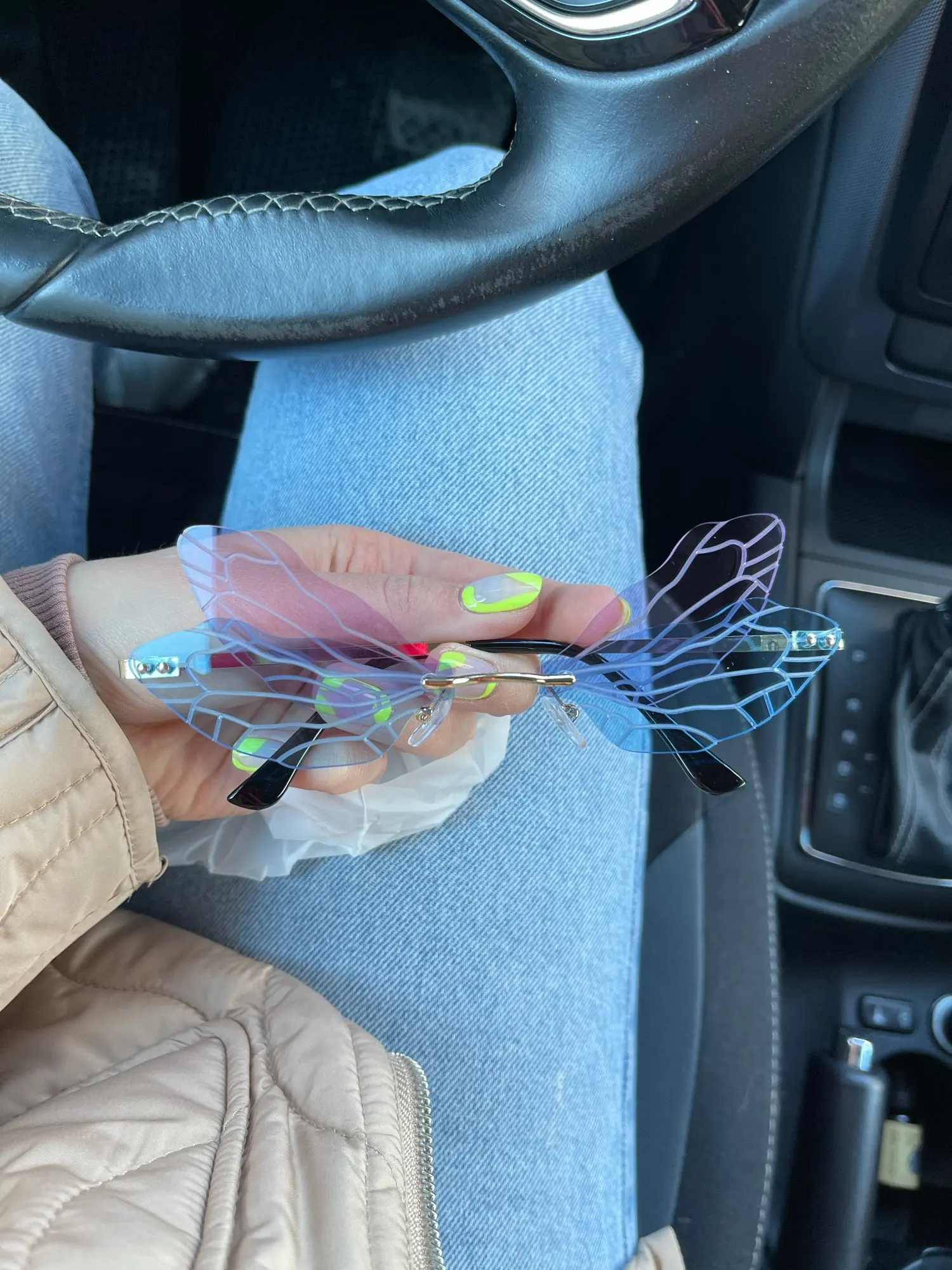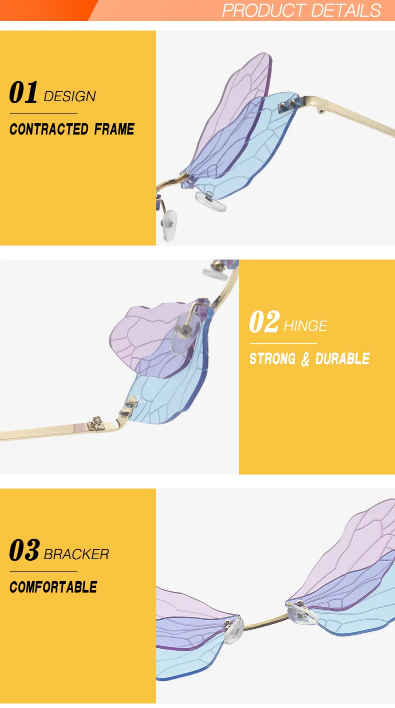 Новинка 2022, модные солнцезащитные очки со стрекозой для женщин и мужчин, брендовые дизайнерские волнистые очки без оправы, роскошные актуальные узкие солнцезащитные очки
