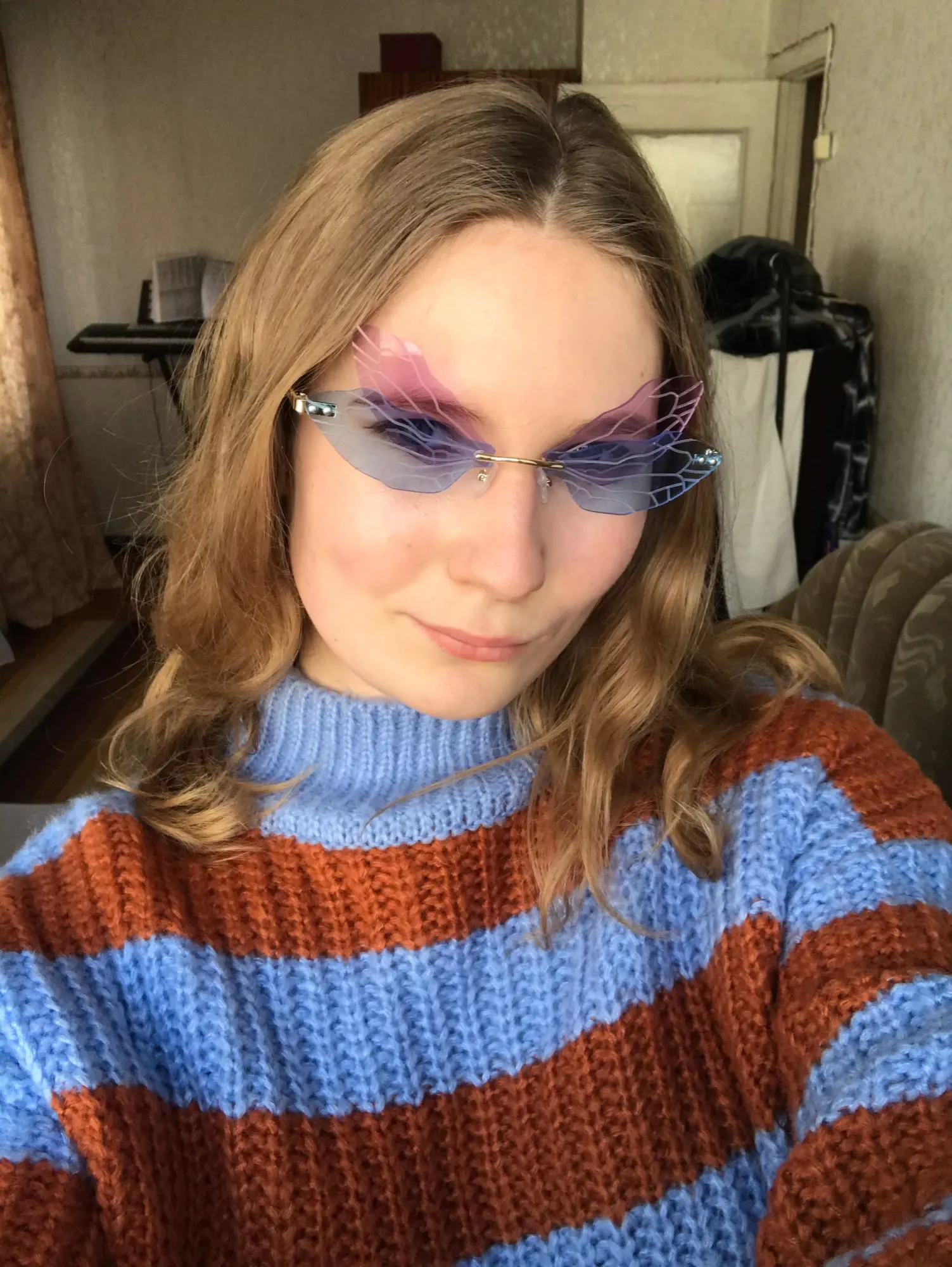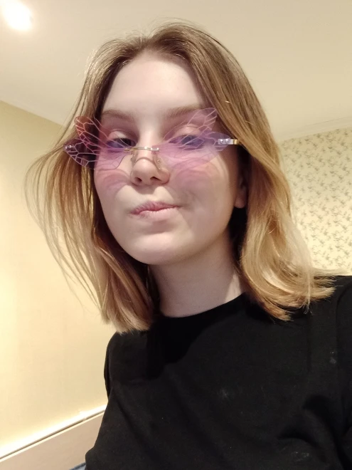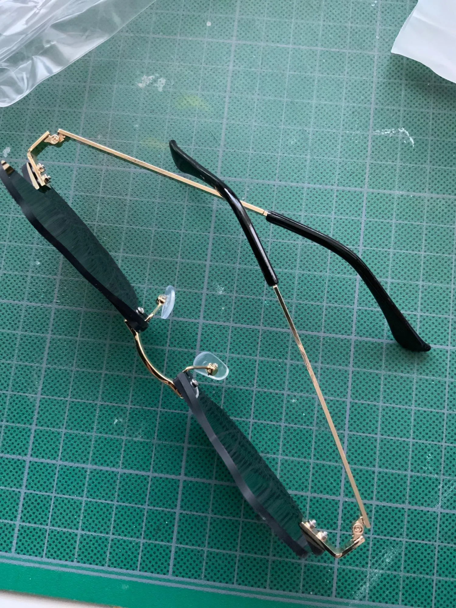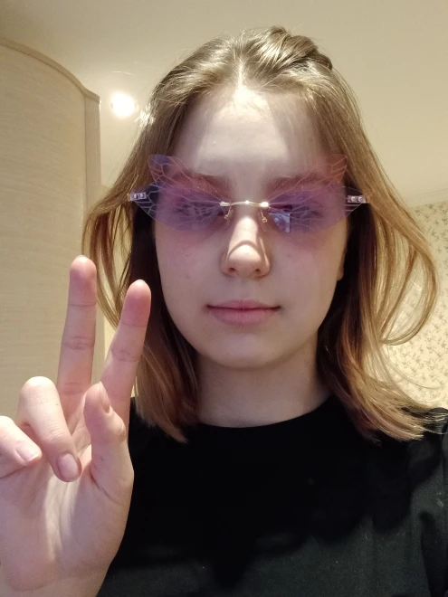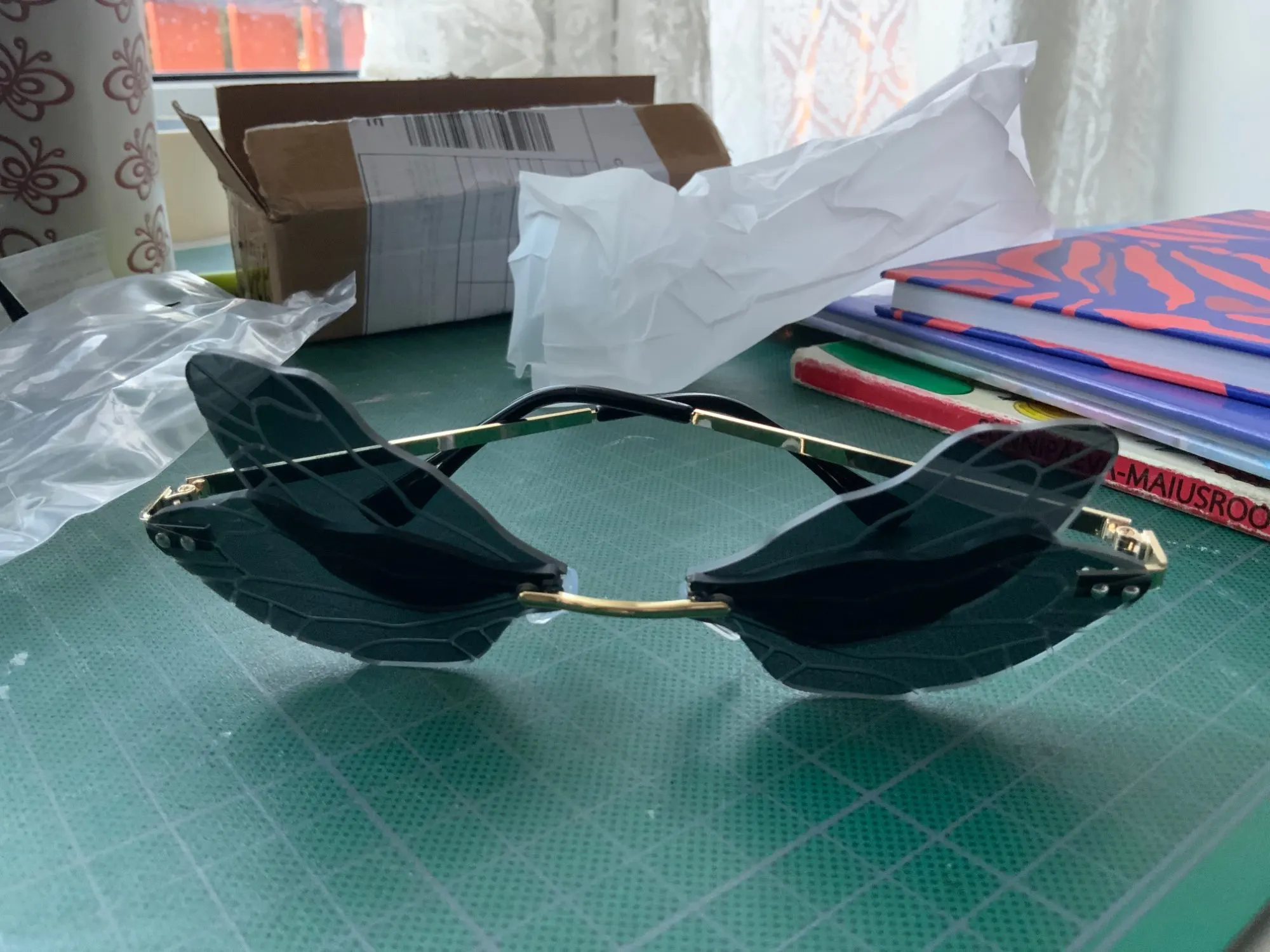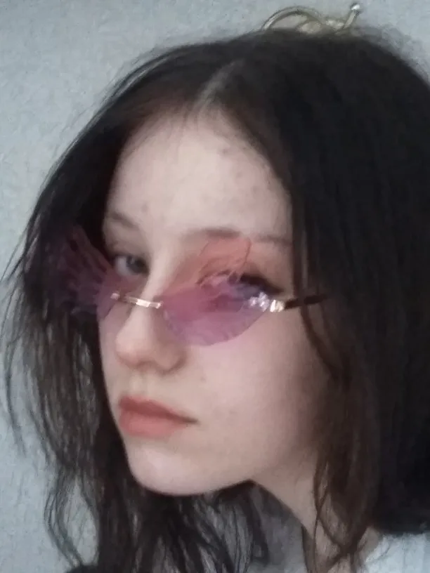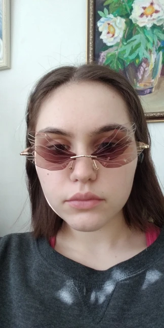 Очки красивые, стильные. Но не для солнца, только для фото. А так - прикольные. На лицо сели нормально, нигде не давят. Всё соответствует фото. Упаковано было тщательно+картонная коробочка. Доставка достаточно быстрая.
