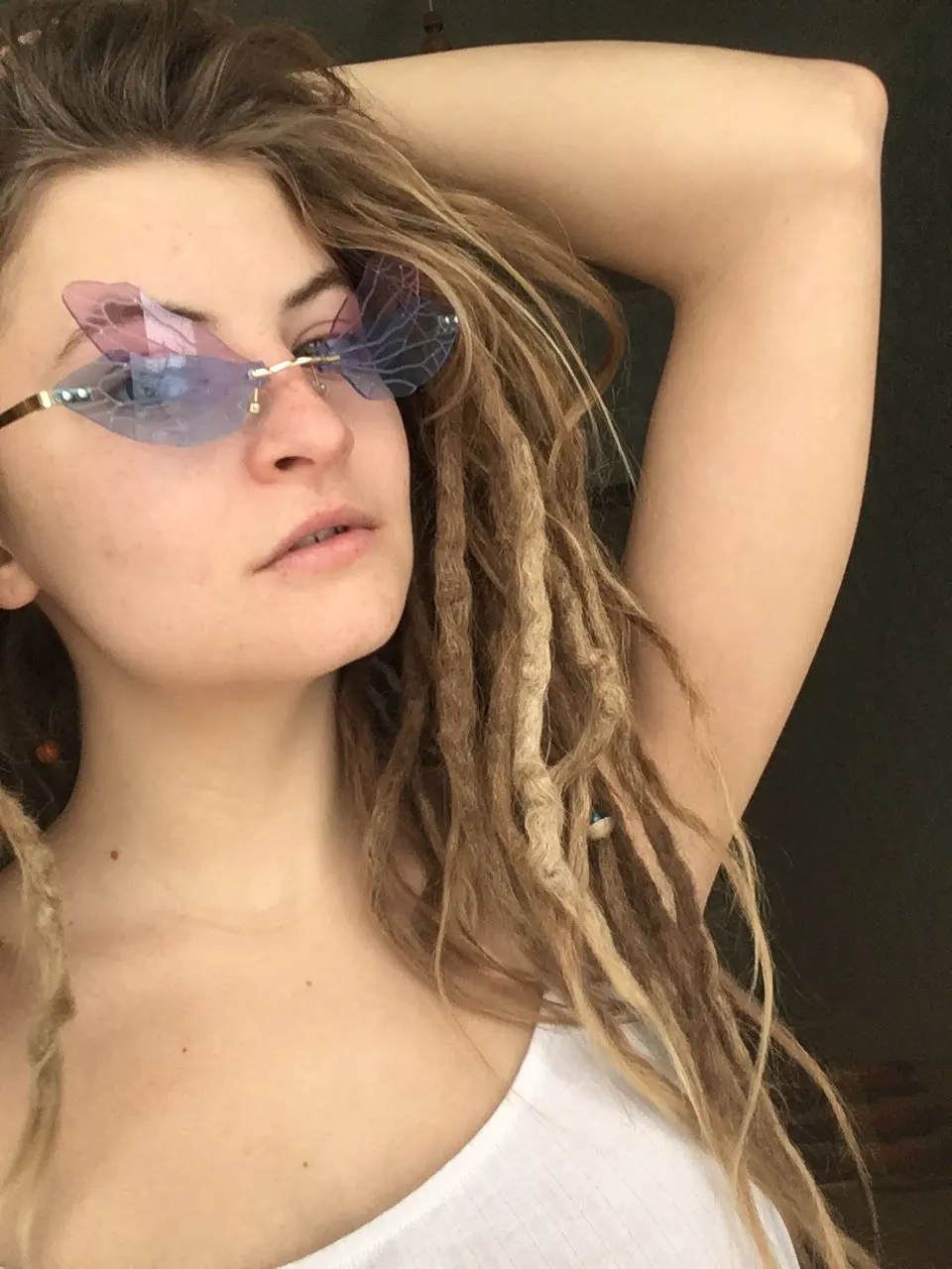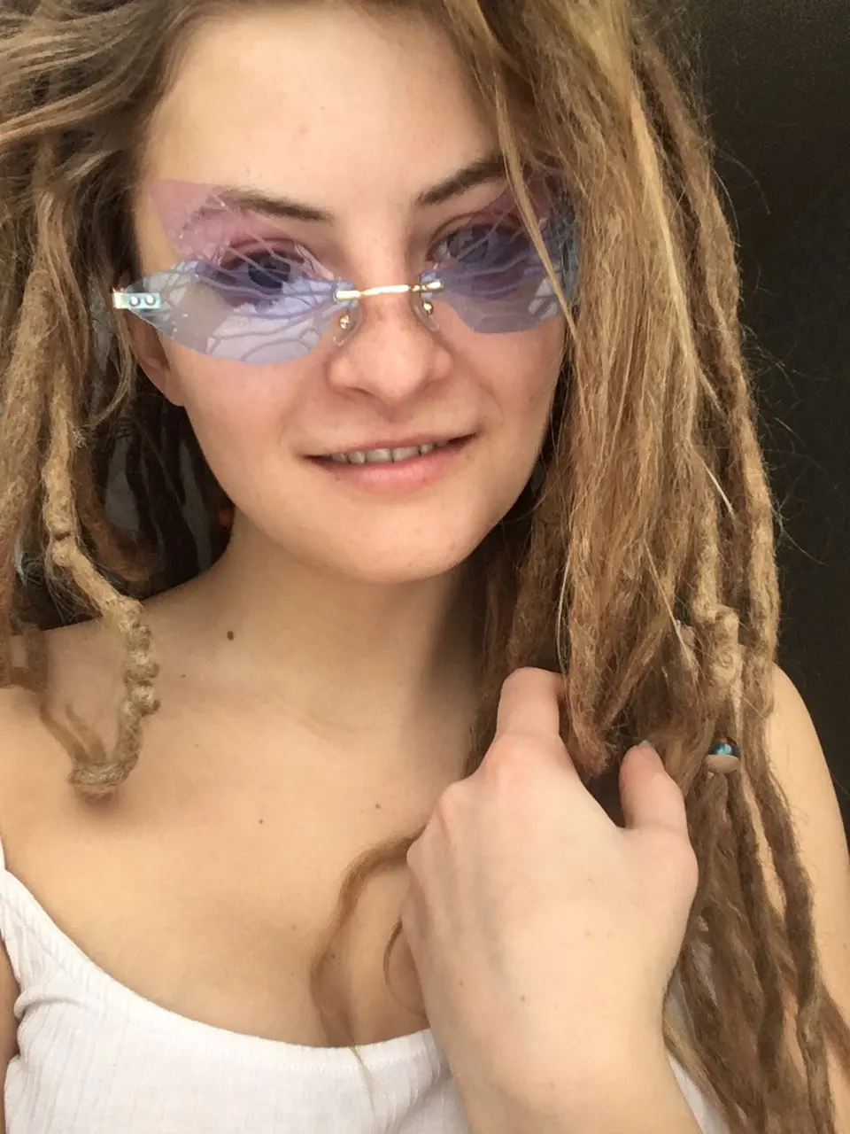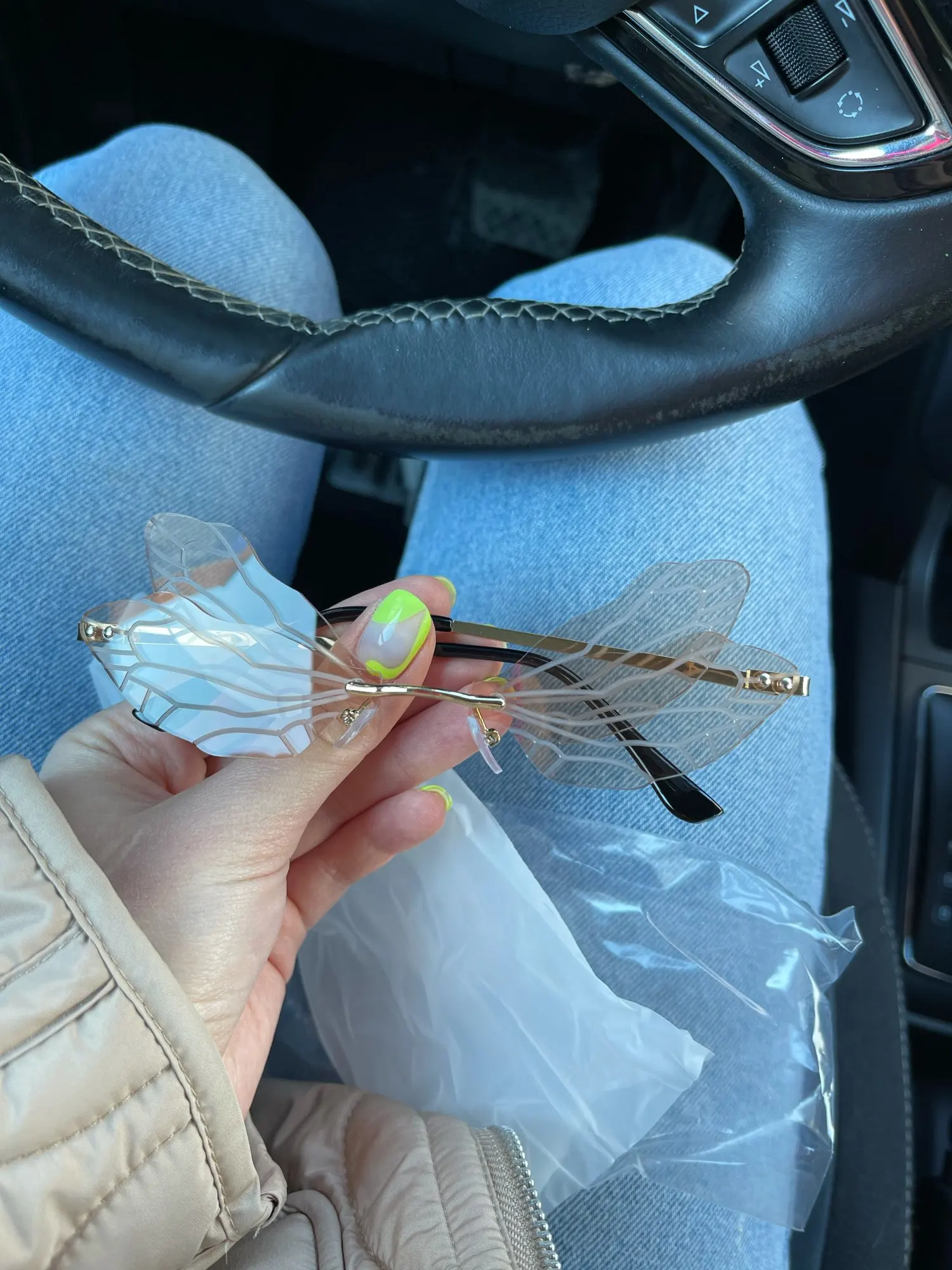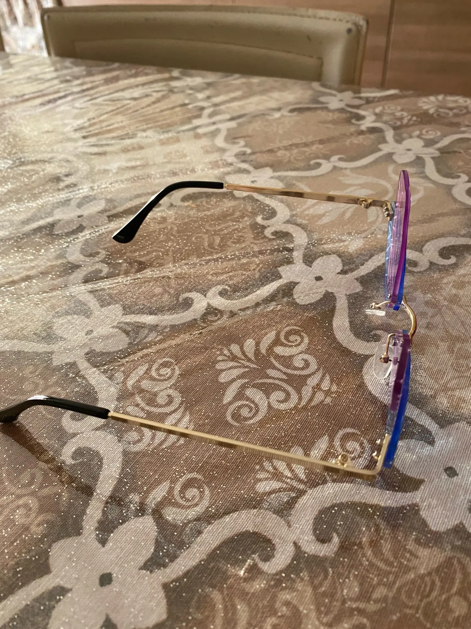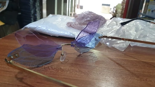 Очки красивые, стильные. Но не для солнца, только для фото. А так - прикольные. На лицо сели нормально, нигде не давят. Всё соответствует фото. Упаковано было тщательно+картонная коробочка. Доставка достаточно быстрая.
