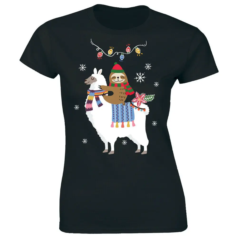 Футболка женская с принтом Ленивца, езды на Ламе, альпака, милая смешная футболка на Рождество, праздник, готический топ свободного покроя, на лето