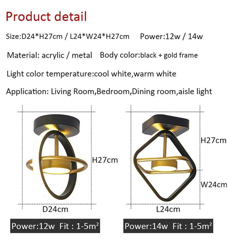 Круглая/D24 * H27 см Мощность: 12 Вт Подходит: 2-5 квадратных метров