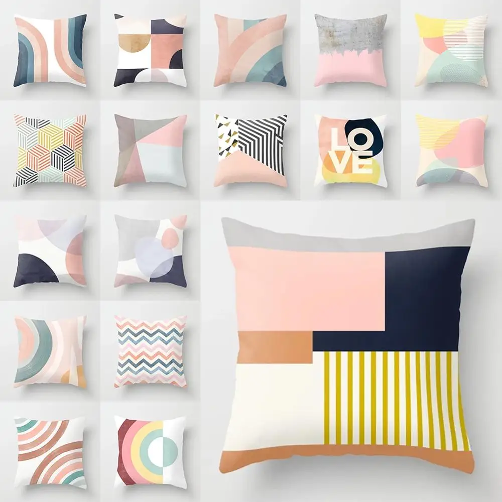 Розовый милый полосатый минималистичный модный квадратный чехол для дивана, наволочка для гостиной, Удобный домашний декор